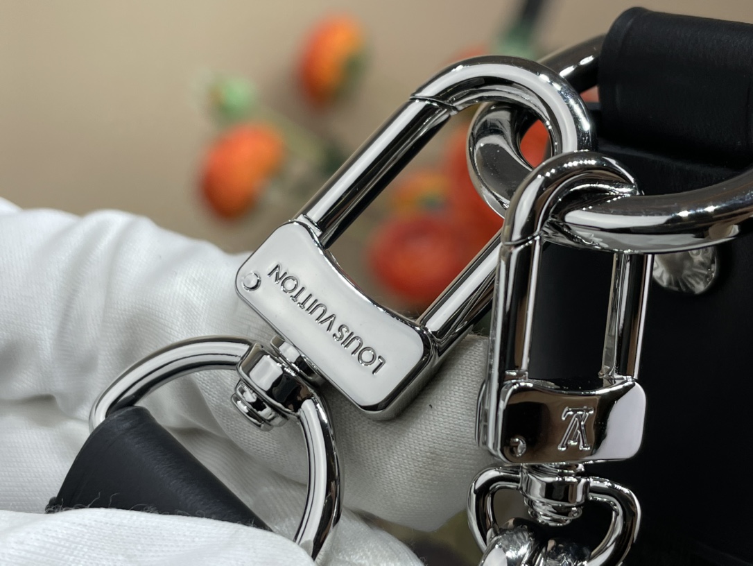 This Loop handbag in smooth calfskin is fashionably upgraded with a black Monogram silkscreen print, creating a three-dimensional pattern. The Loop is adorned with a removable silver-color biker chain with edgy versions of the Monogram Flowers, giving it rock-and-roll allure. A removable and adjustable leather strap gives additional carry options.