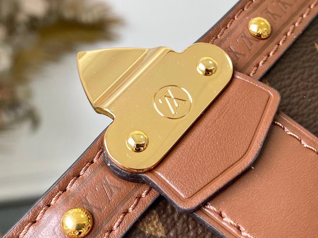 Nicolas Ghesquière introduces a new shape – both feminine and casual – inspired by Louis Vuitton’s archives: the Papillon Trunk handbag. The iconic Papillon duffle bag is transformed into a trendy semi-rigid baguette. The S-Lock, LV-embossed trunk trimmings and studs pay homage to the House’s trunkmaking beginnings.