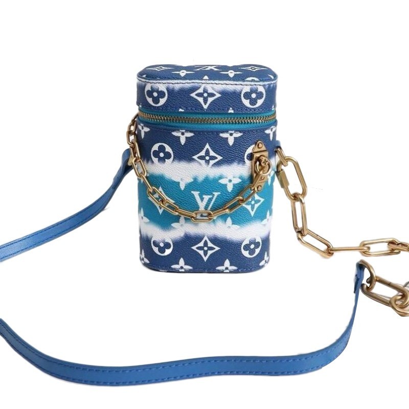 Virgil Abloh’s new Phone Box is a compact bag, perfect for carrying small essentials. Made from classic Monogram canvas with an adjustable strap in smooth leather, it features Abloh’s gold-color chain signature. Inside there’s a mini flat pocket for credit cards and a driver’s license.