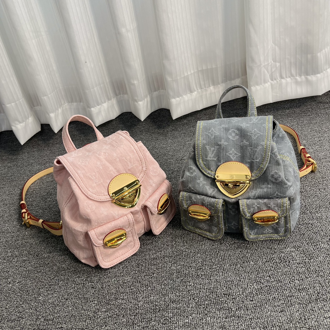 Vintage LOUIS VUITTON Monogram Denim Buggy PM Hand Bag Khaki