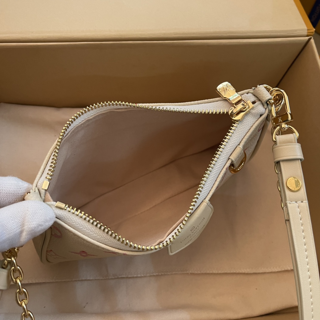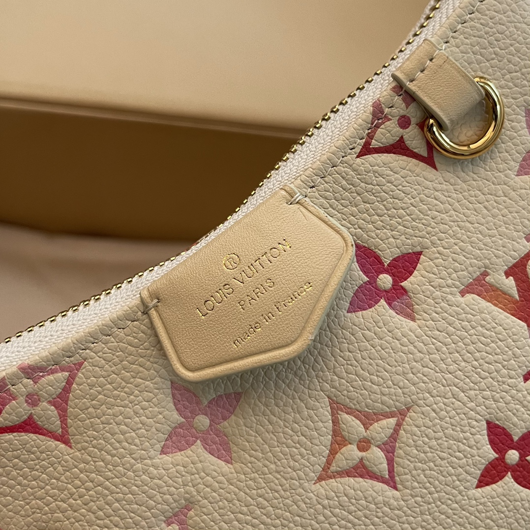 This edition of the Easy Pouch on Strap belongs to the Sunrise Aquarelle collection. It is crafted from Monogram Empreinte leather, which is digitally printed with a gradation of oranges and pinks evoking a watercolor painting. Large enough for everyday essentials, this bag has a removable chain and a removable, adjustable strap for shoulder or cross-body carry.