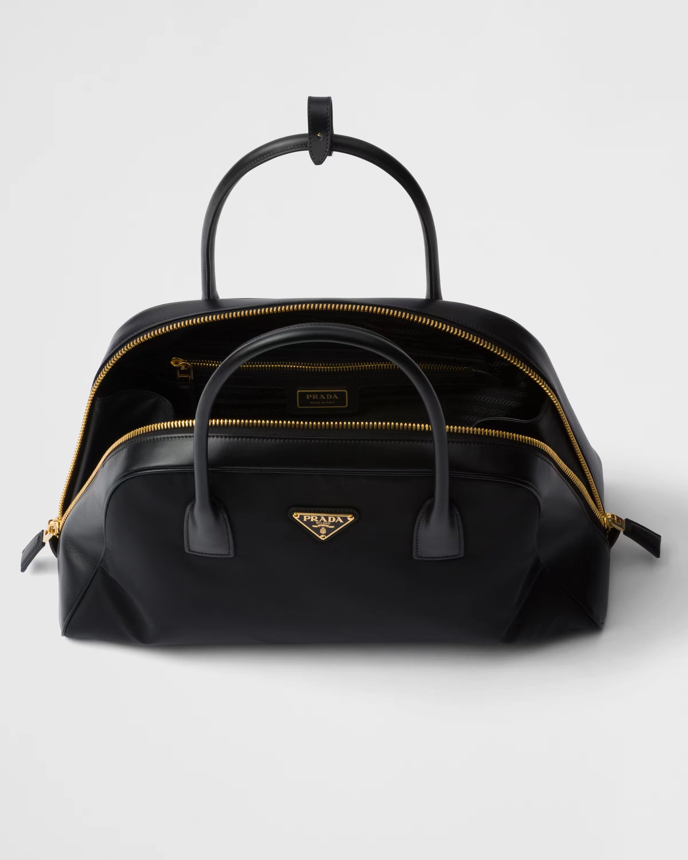Large Re-Nylon and leather top-handle bag