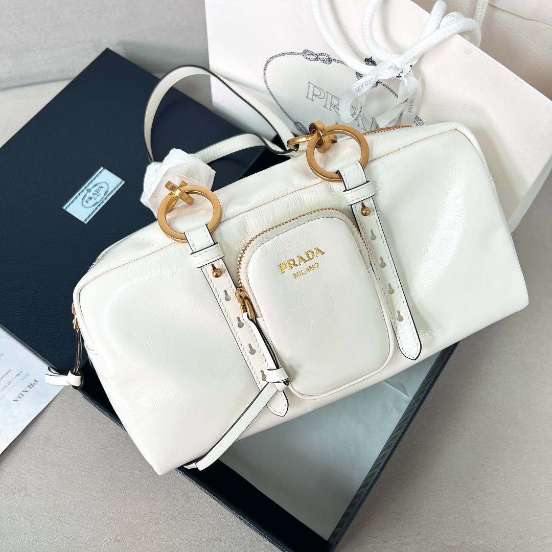 • Prada-2025 Oil-Wax Leather Dangel Bag 1BB138-White