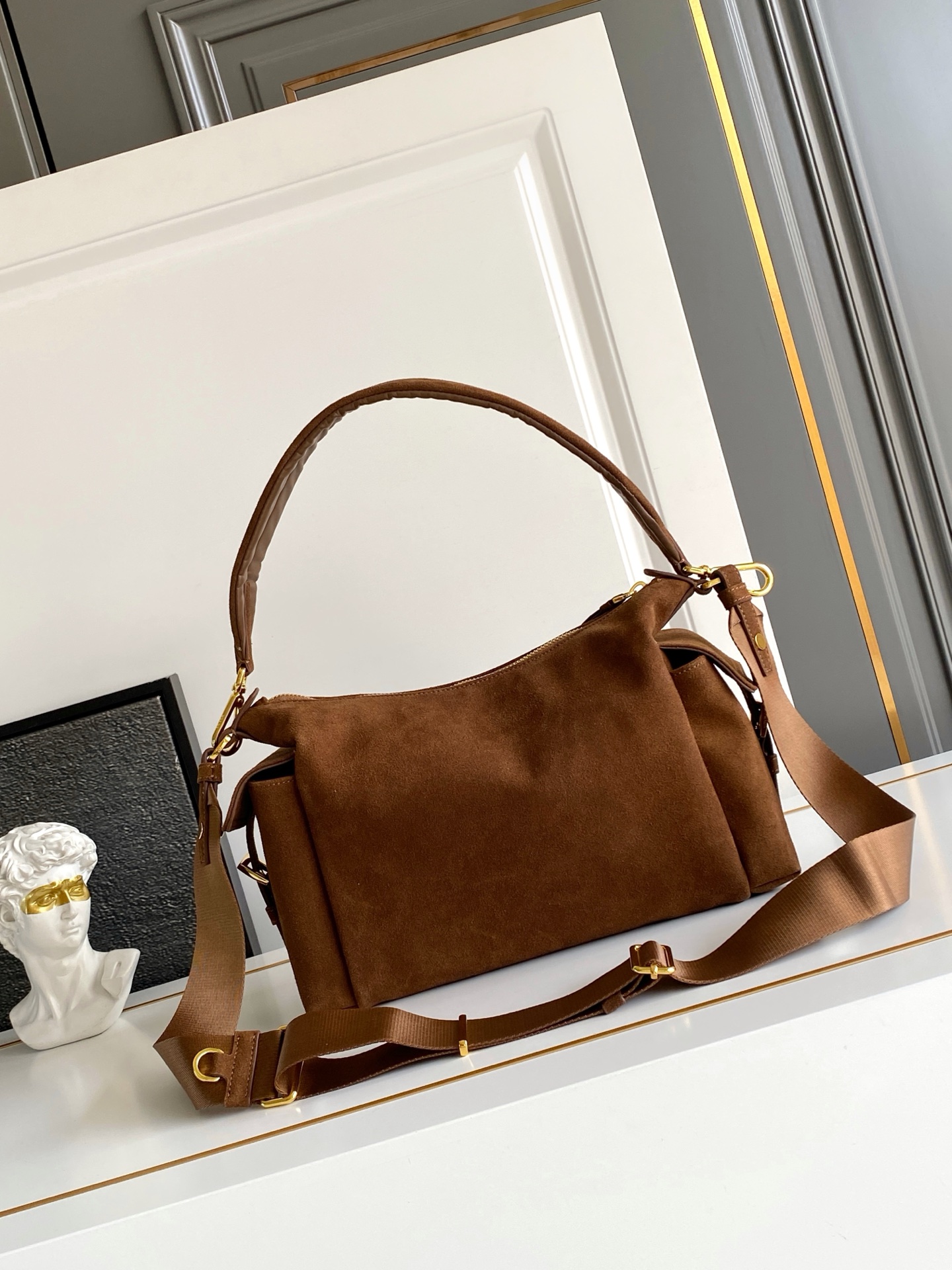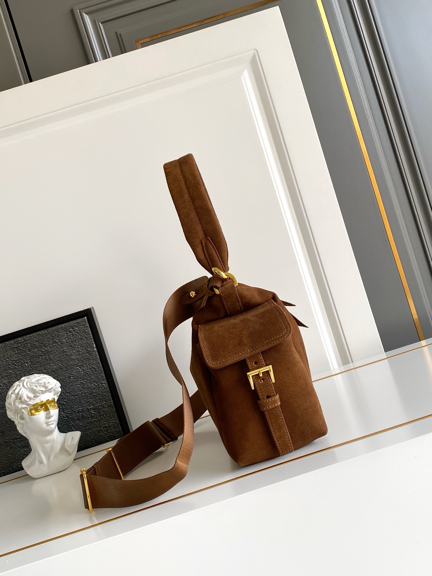 The Explore bag, a perfect synthesis of sophistication and functionality, has a soft, multi-pocket silhouette. Suede enhances the versatile, roomy design completed with refined and iconic details that reflect Prada's artisan tradition.