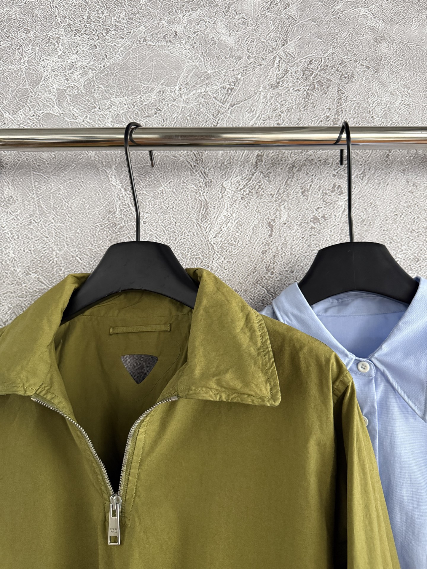 It has the casual vibe of a sweatshirt but with the sharper structure of a jacket, blending retro workwear details into a modern design. Pair it with the coordinating shirt for a layered look that mixes clean, structured tailoring with relaxed, everyday style—breaking the usual workwear jacket rules.
