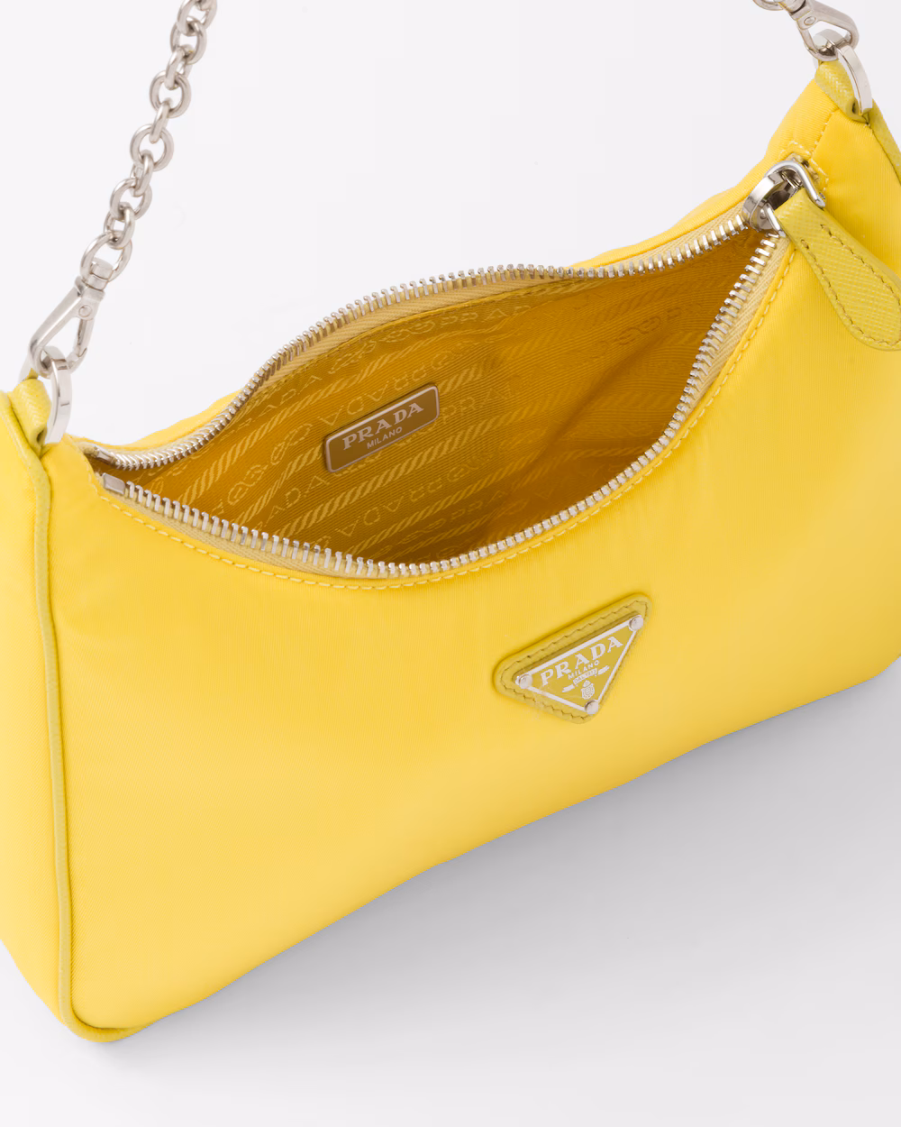 Inspired by the iconic mini hobo bag, the Prada Re-Edition 2005 shoulder bag is made of Re-Nylon: a regenerated nylon yarn (ECONYL®)produced from recycled, purified plastic trash collected in the ocean, fishing nets and textile waste fibers. This versatile bag with Saffiano leather trim comes with a detachable pouch attached to the shoulder strap. For sustainable care to preserve the product's characteristics and reduce microfiber shedding, we recommend not washing the item too often. Let the product air out after every use and have it dry cleaned at a specialized ecological dry cleaners.