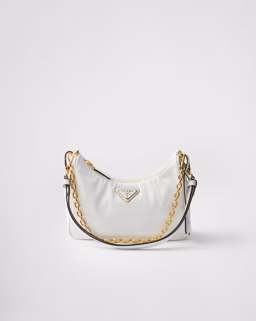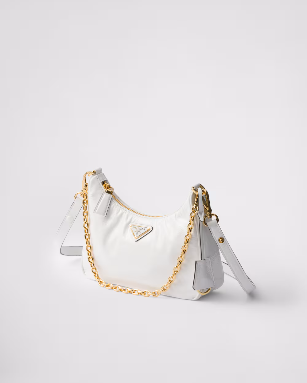 The lustrous touch of naplak patent leather and the elegance of gold-tone hardware give sophisticated, versatile allure to this mini-bag decorated with the iconic triangle logo.
