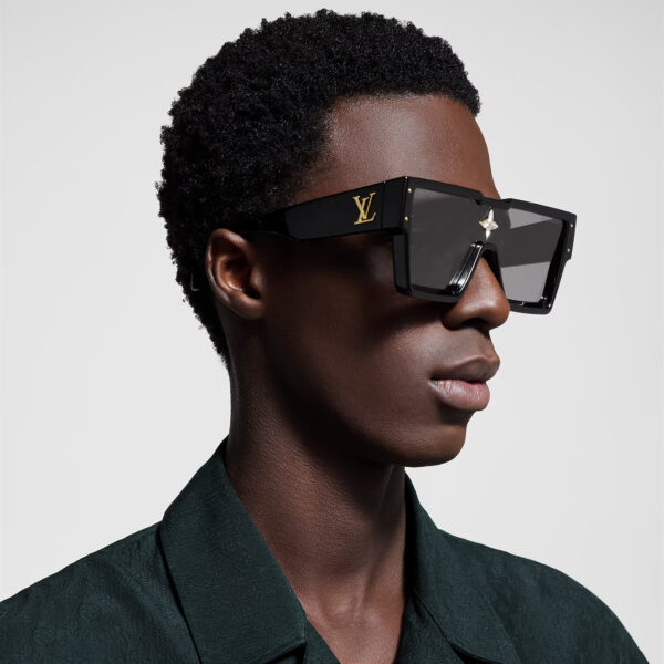 The Cyclone sunglasses are a modern take on an iconic style from Fall-Winter 2006. This bold style features an exaggerated frame with angular lines and a deep beveled front. The Monogram Flower signature, inspired by the original version, is reinterpreted with light-reflecting crystals for a glamorous finish.