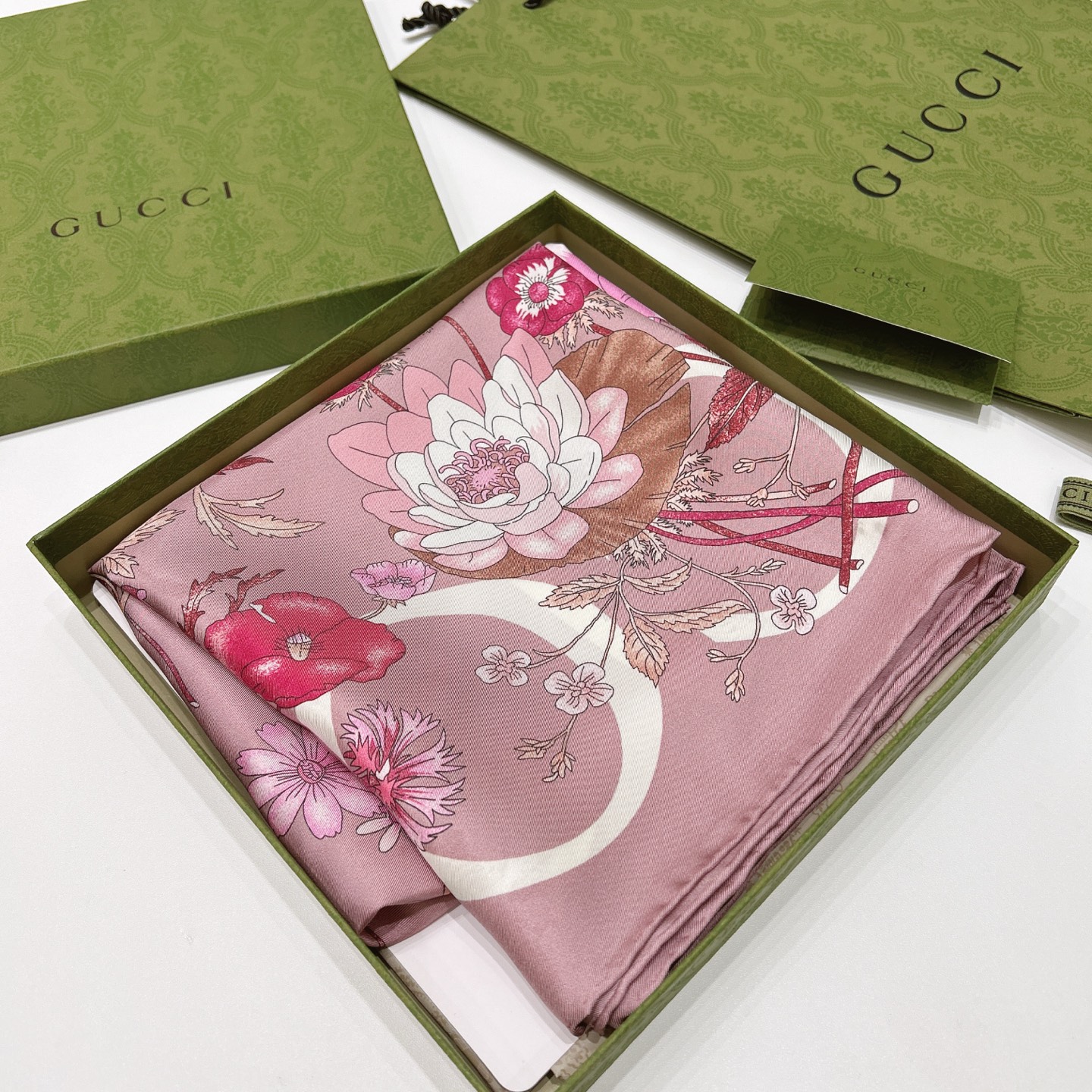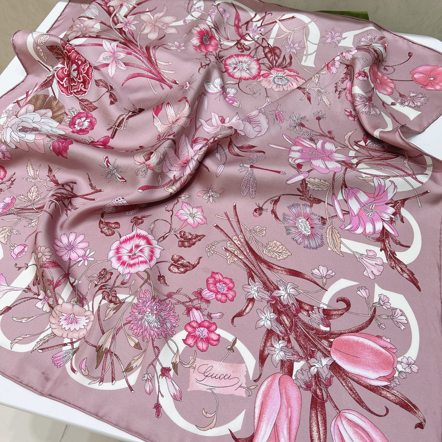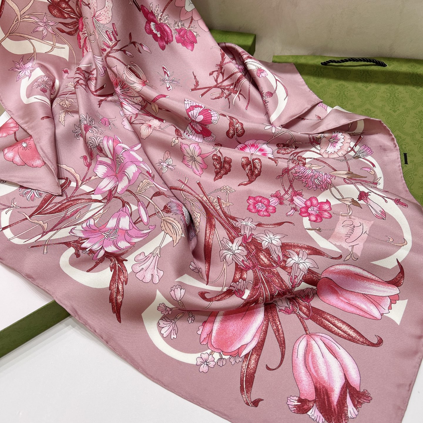 The Flora floral print, a timeless design, is reinterpreted in the 2025 Early Spring collection. This iconic pattern appears on a series of soft, smooth silk accessories in delicate pastel tones, infusing each piece with a romantic flair. This square scarf is crafted from light blue silk and is beautifully adorned with the Gucci Flora floral print, adding a romantic touch to any outfit.