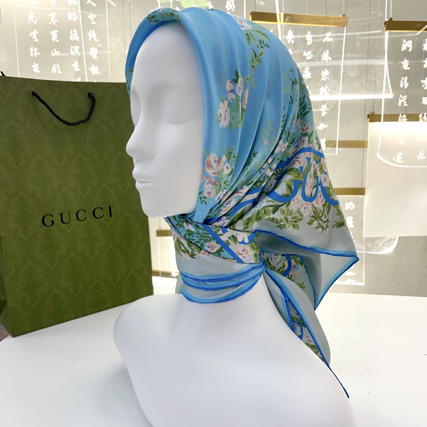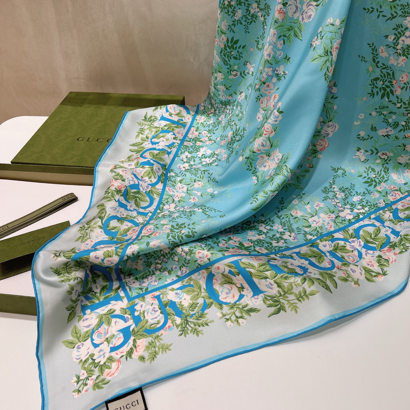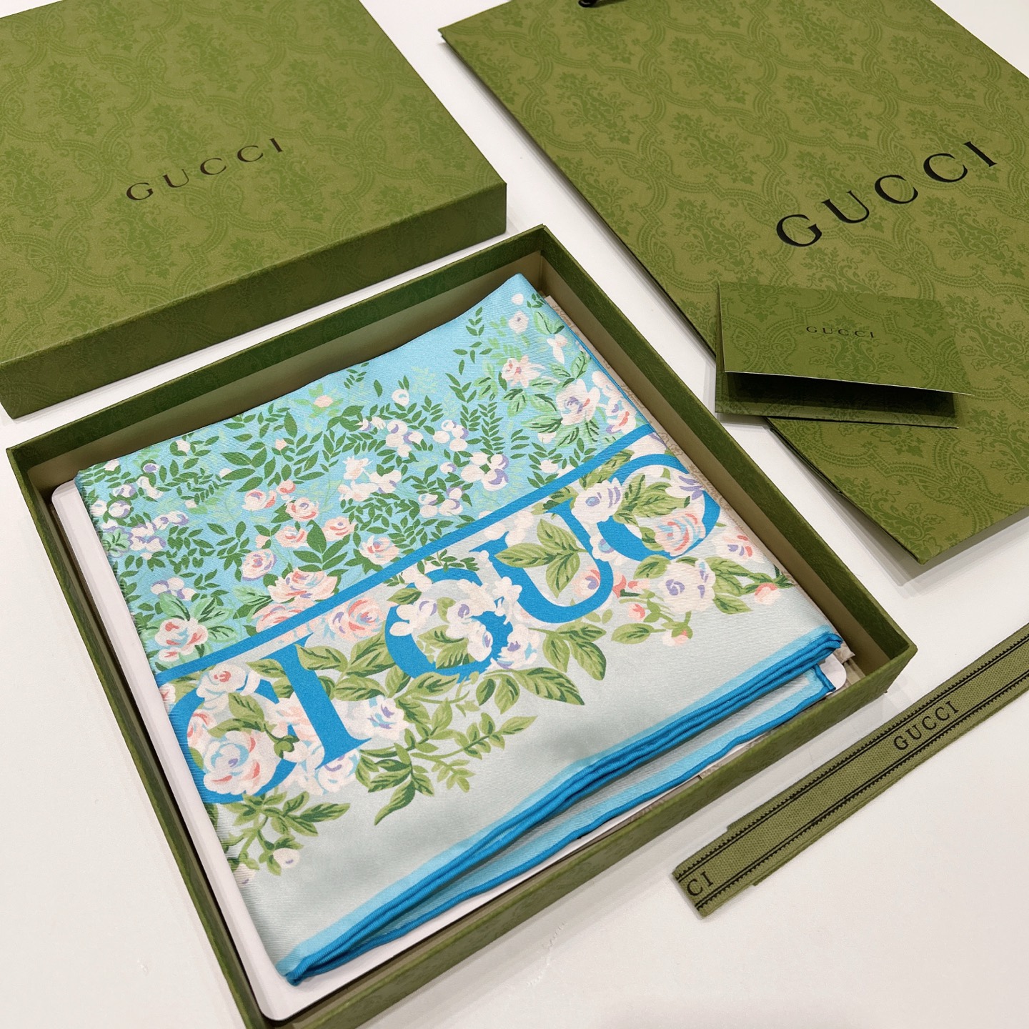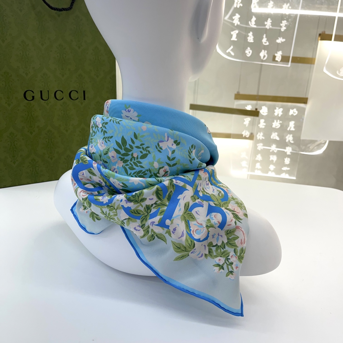 In the Early Spring Collection, a variety of soft, smooth accessories beautifully showcase floral patterns and delicate pastel colors, radiating a romantic vibe. This square scarf is crafted from high-quality silk, adorned with the iconic Gucci interlocking GG floral print all over, adding an elegant and timeless touch to your ensemble.