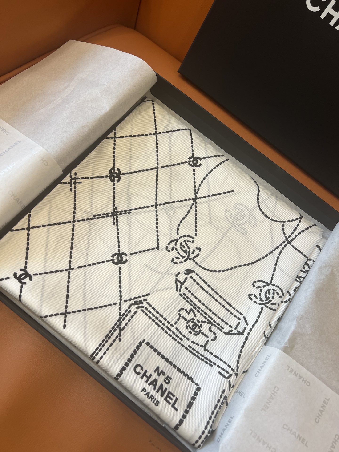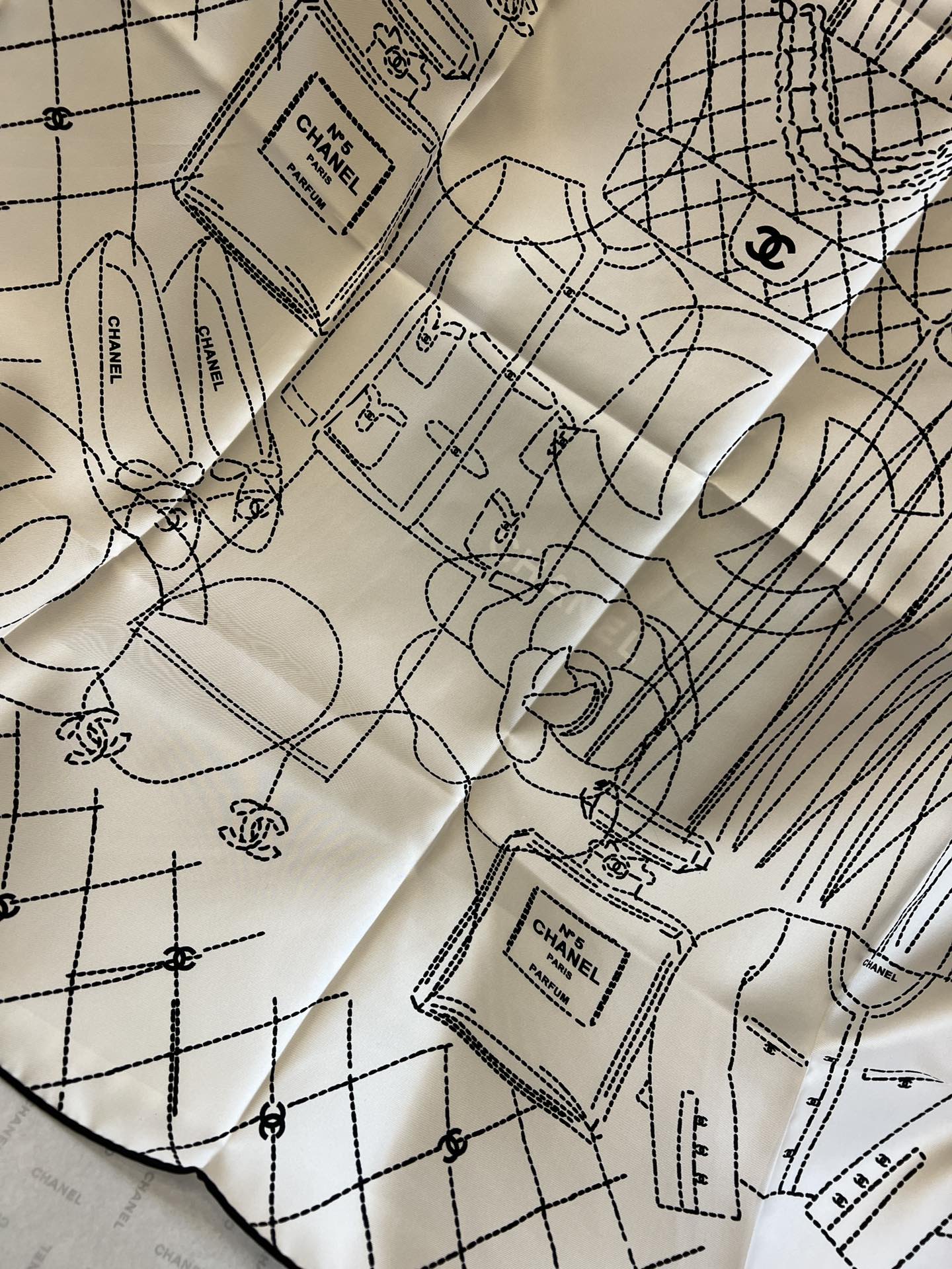 A scarf filled with all the favorite things of Miss Chanel High profile with strength🫶Limited edition worldwide Definitely not a scarf that can be owned by spending money The best silk, it is better to have nothing than to have something inferior‼ ️ 90*90cm 100% silk twill