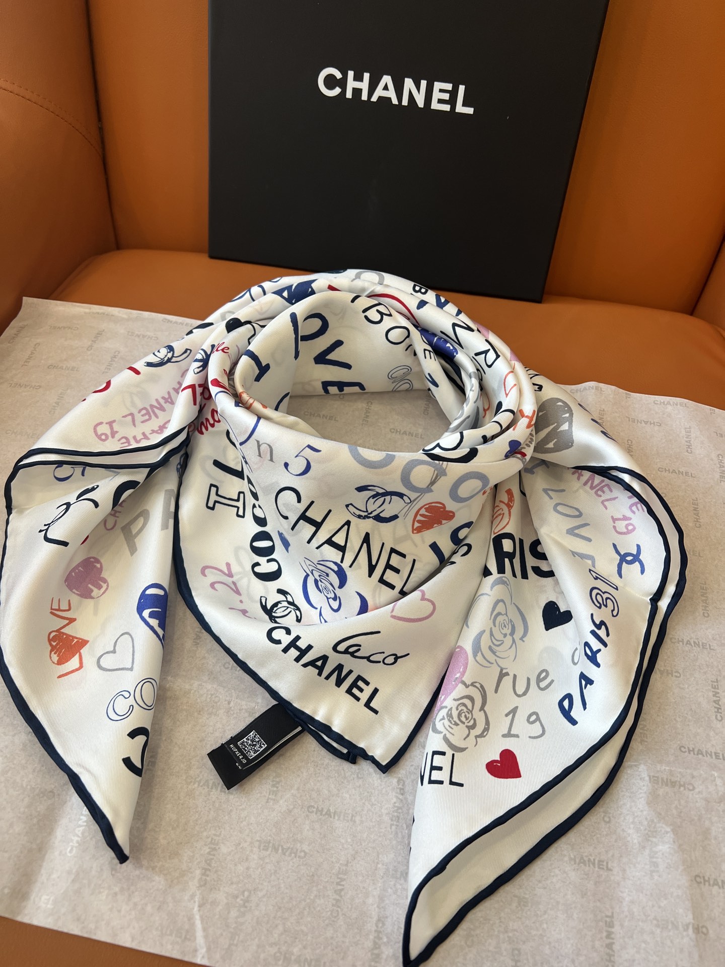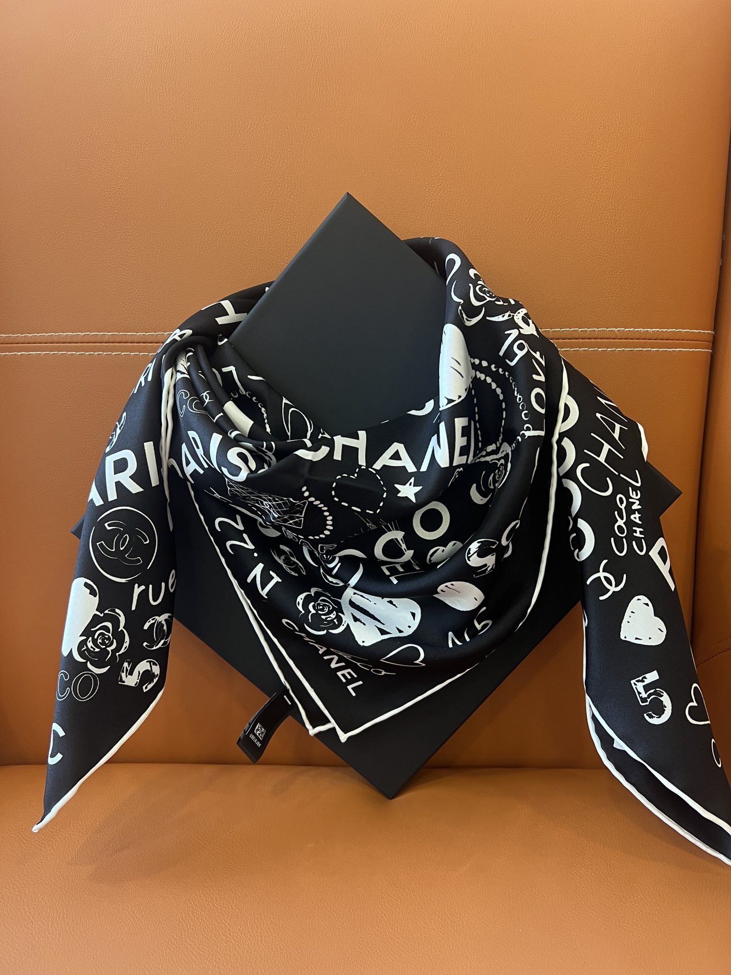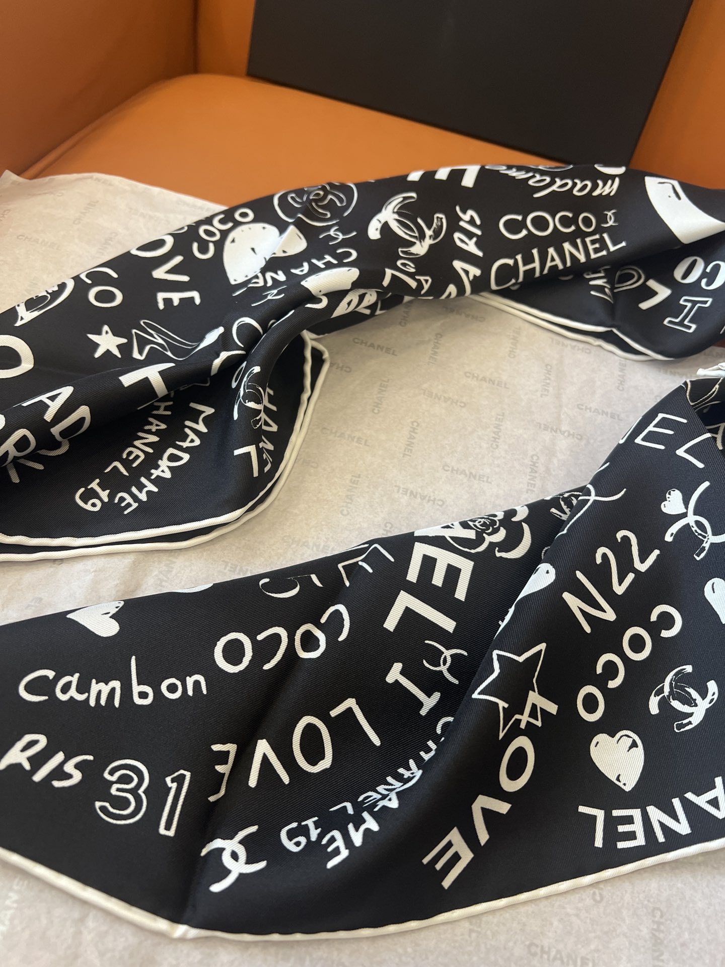 Chanel 25C Black, White & Grey Pearl Double-C Scarf