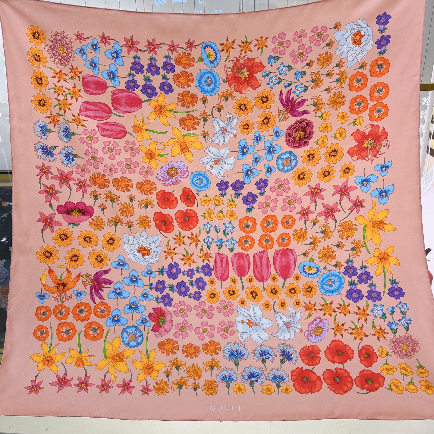 GUCCI "Embellished All-Over Floral Print" Silk Square Scarf