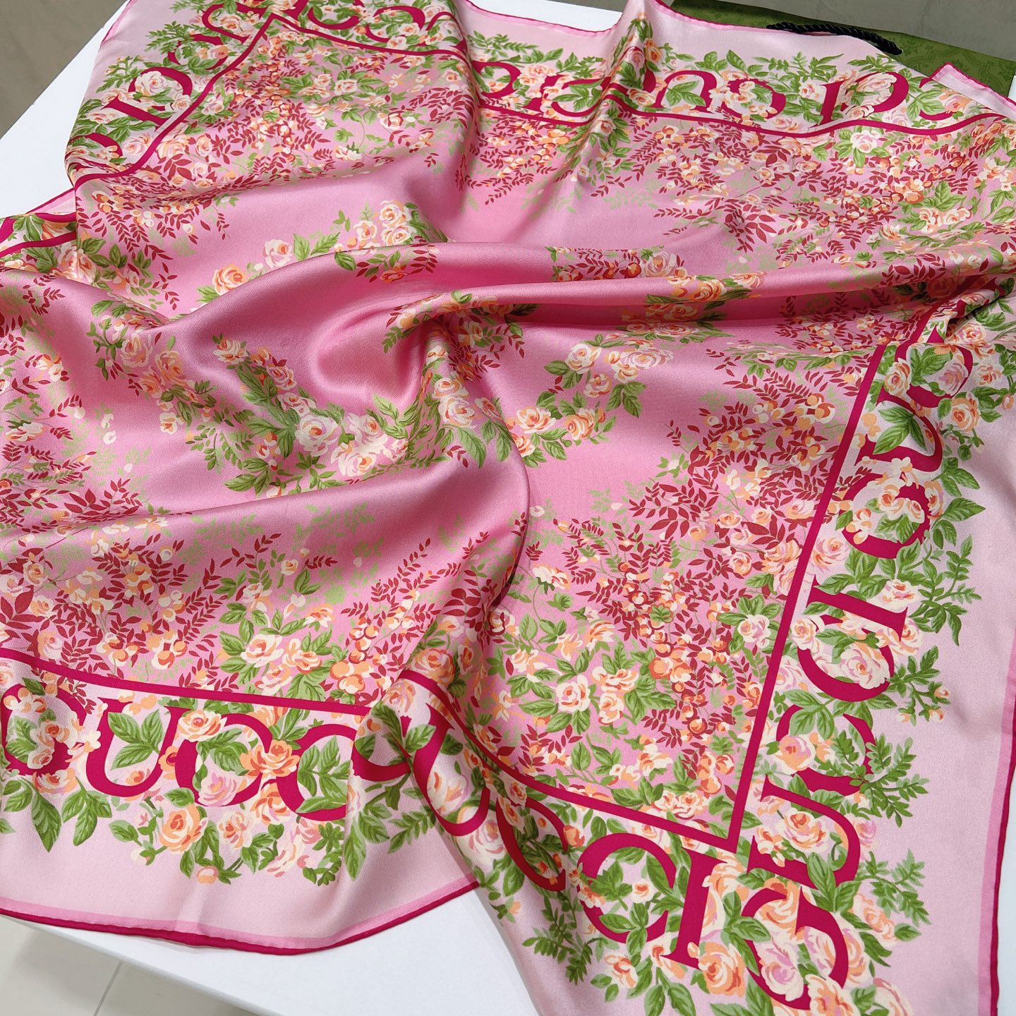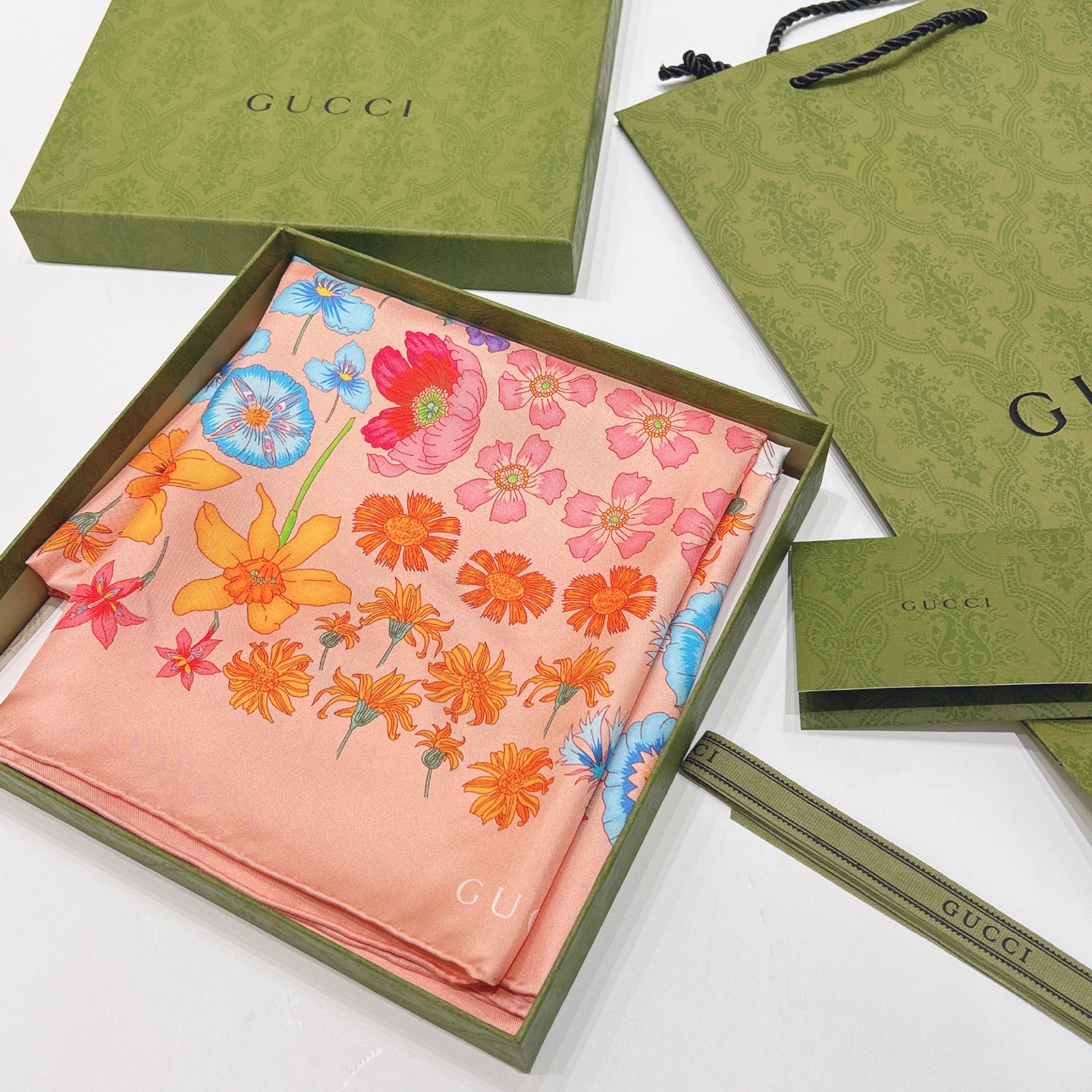 GUCCI "Interlocking GG Floral Print" Silk Square Scarf