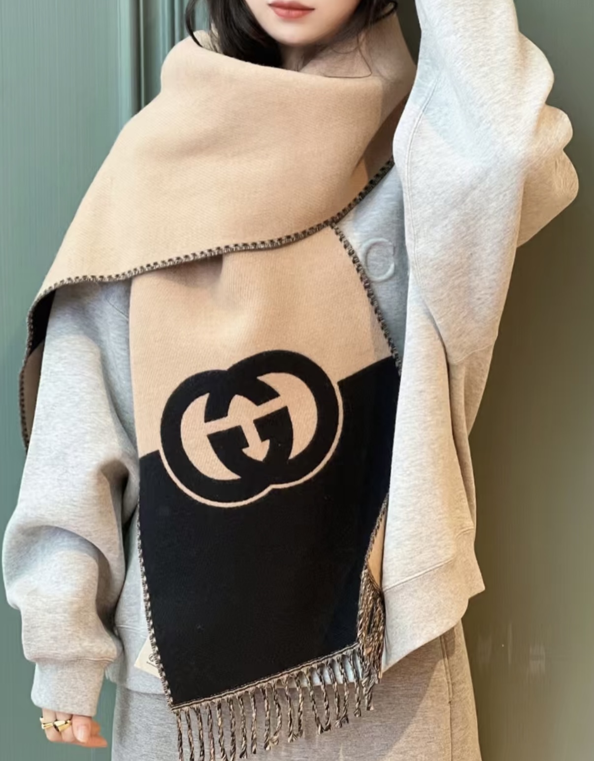 𝐆𝐆Long scarf denim double-sided jacquard scarf denim blue Size 34x194cm Wool material Couple color fashionable for winter! hand It feels thick and soft, you can switch between big G and small G at will, the styles on both sides are versatile and full of