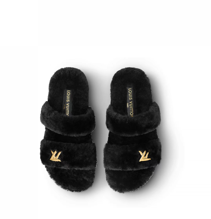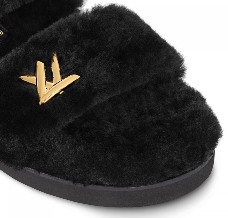 The LV Sunset flat comfort mule is crafted from fluffy shearling for ultimate softness and comfort. Ideal for travel and both indoor and outdoor wear, this on-trend model features two straps: one adjusted with velcro, the other embellished with a gold-tone LV accessory. An anatomic insole and lightweight micro outsole complete this design.