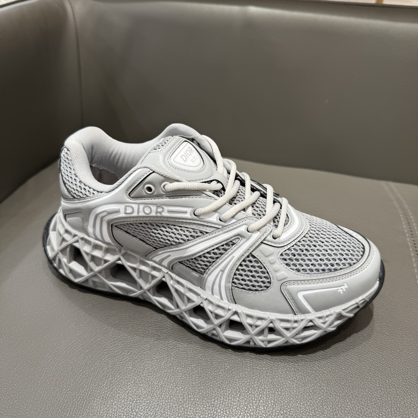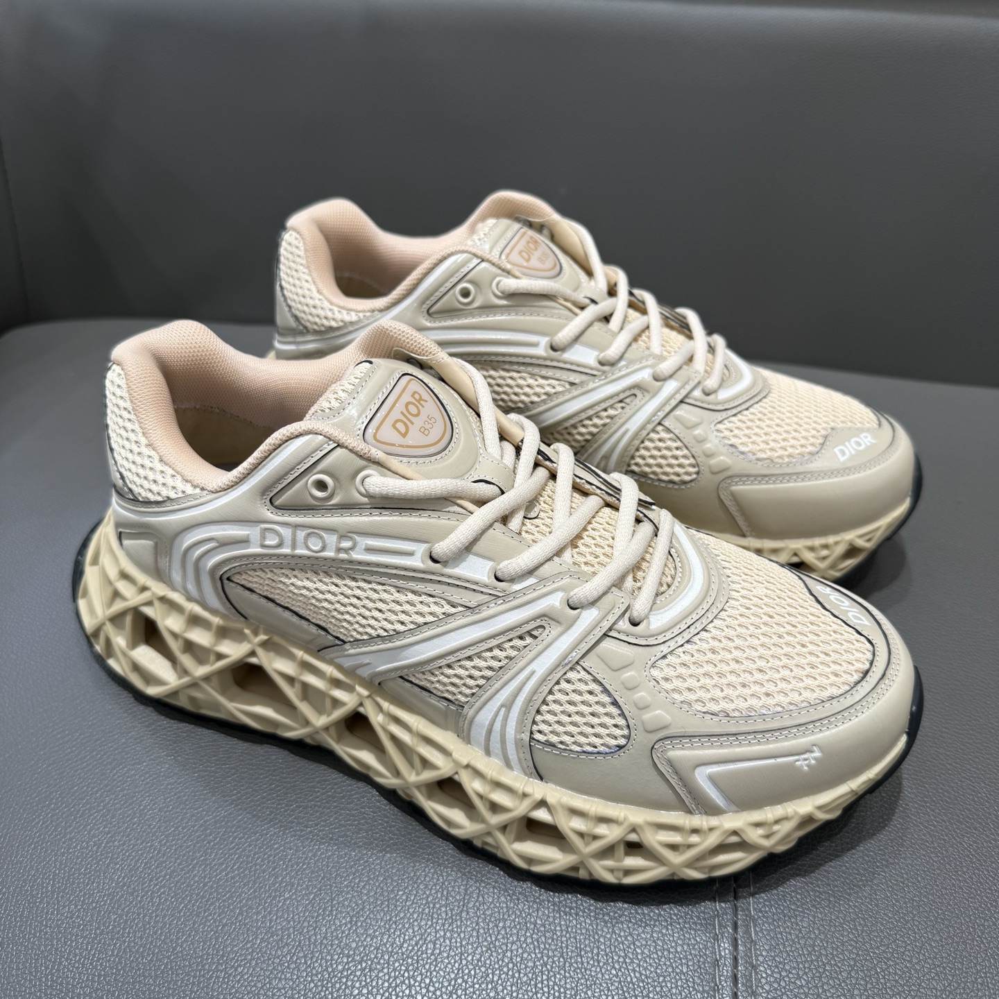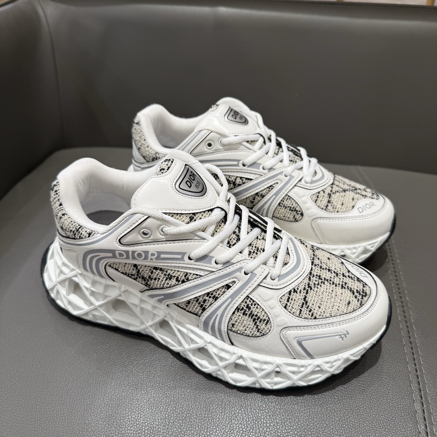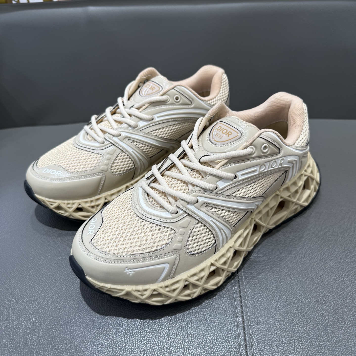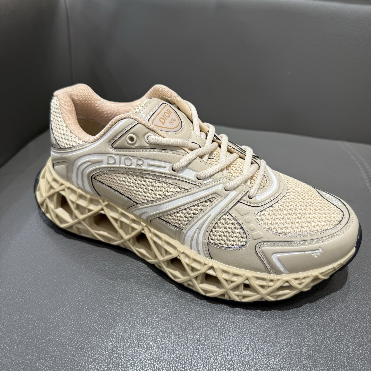 The B35 NXXT sneakers exude a bold sense of futurism. Inspired by architectural aesthetics, the hollowed sole features the iconic cannage motif—an ode to Dior’s innovative craftsmanship. Lightweight and voluminous, the outsole delivers excellent stability while adding a dynamic edge to the sleek silhouette.