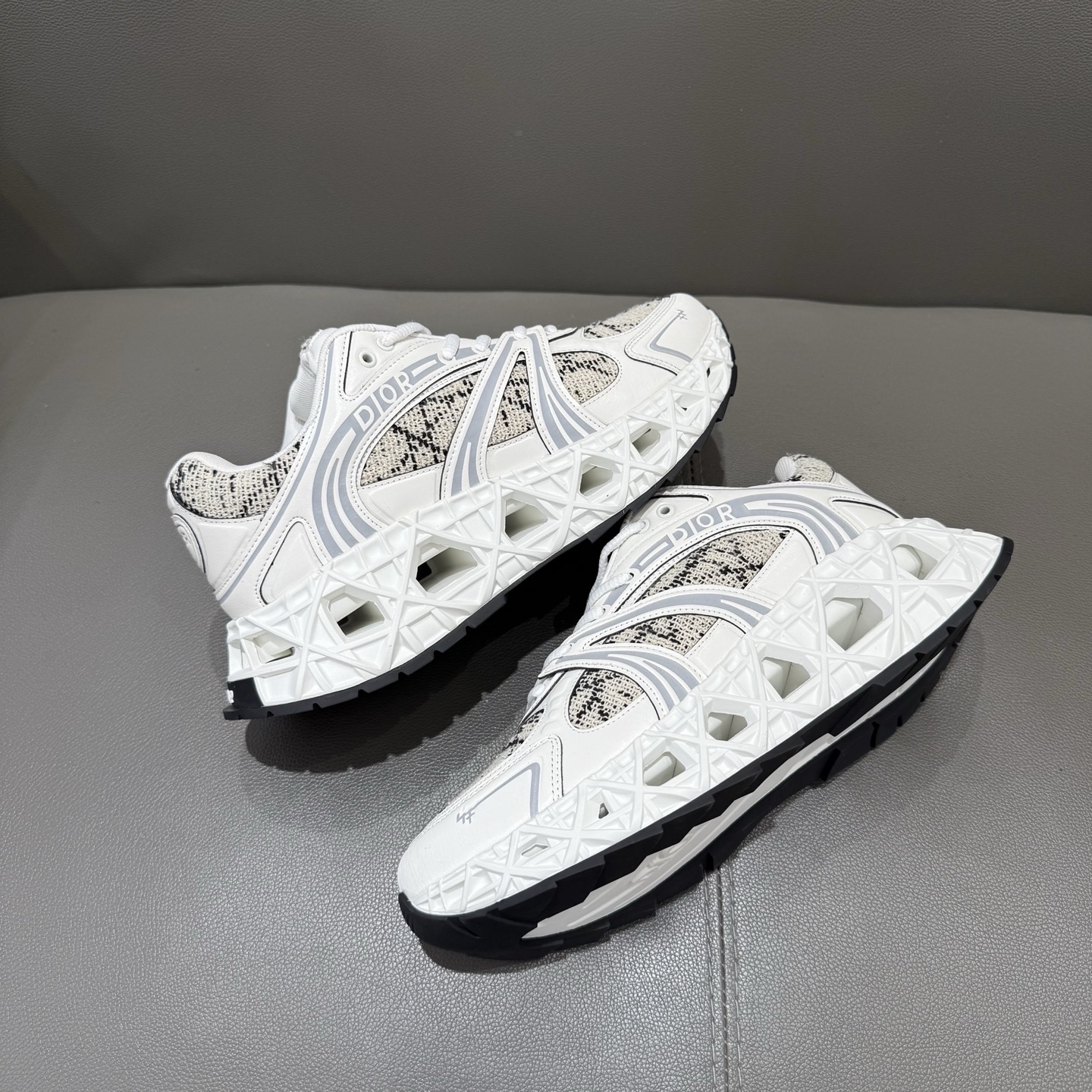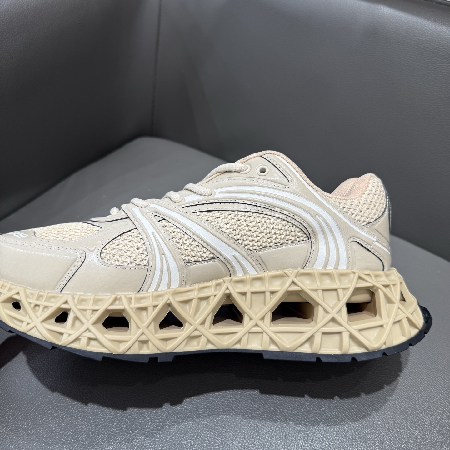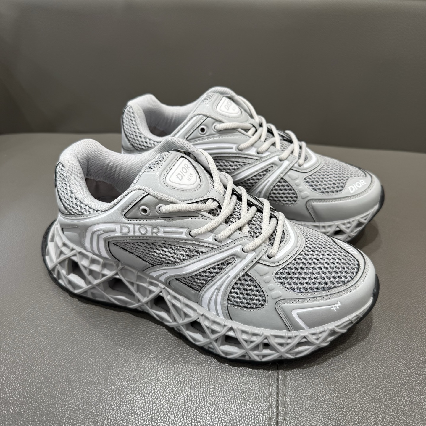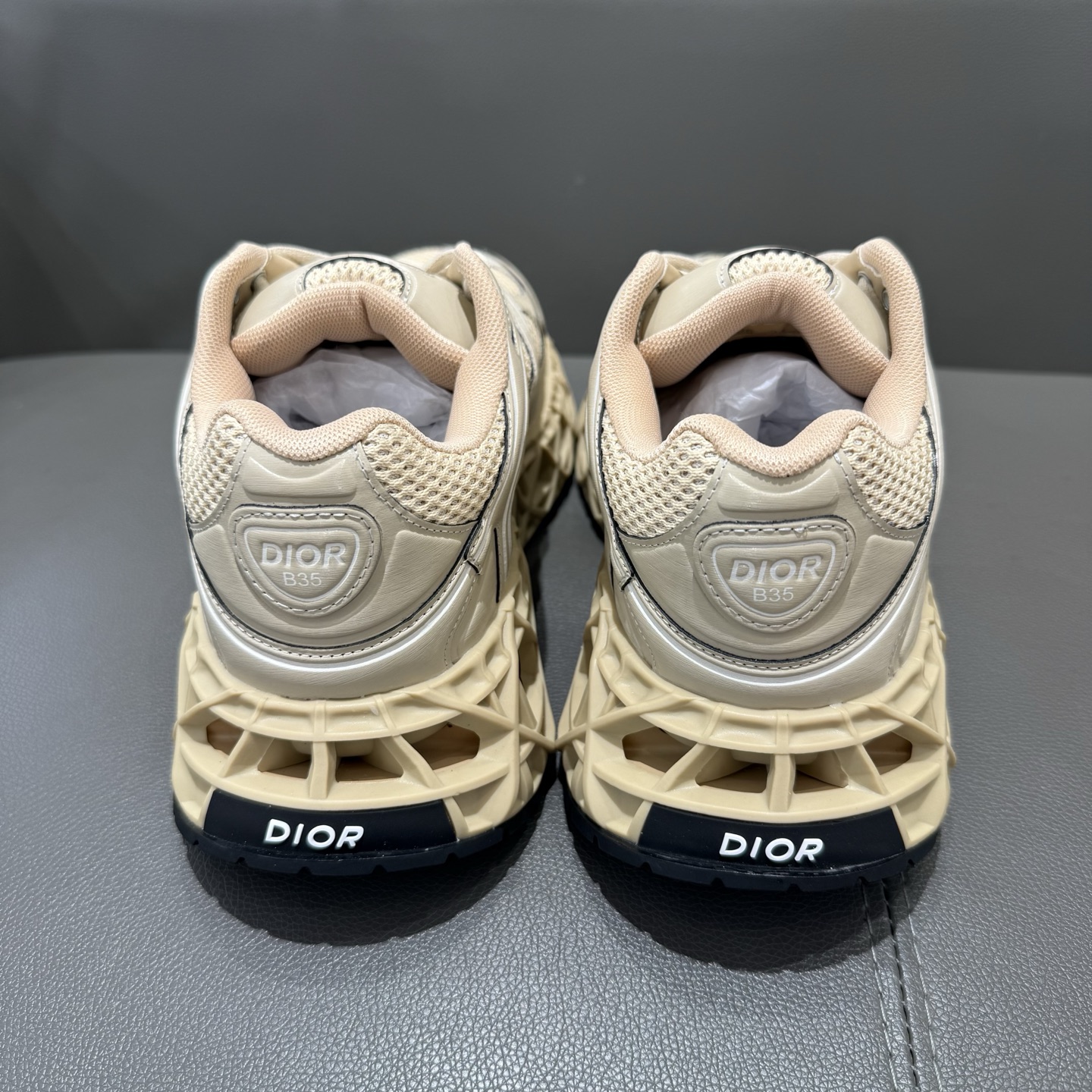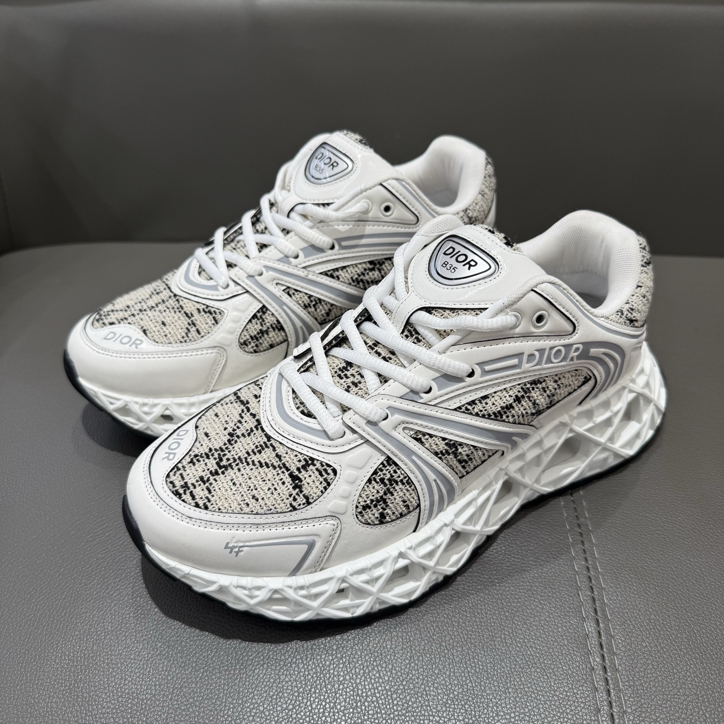 The B35 NXXT sneakers exude a bold sense of futurism. Inspired by architectural aesthetics, the hollowed sole features the iconic cannage motif—an ode to Dior’s innovative craftsmanship. Lightweight and voluminous, the outsole delivers excellent stability while adding a dynamic edge to the sleek silhouette.