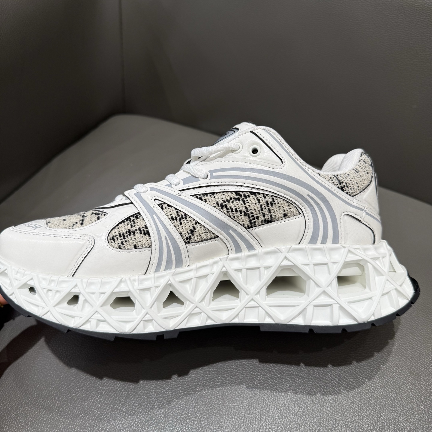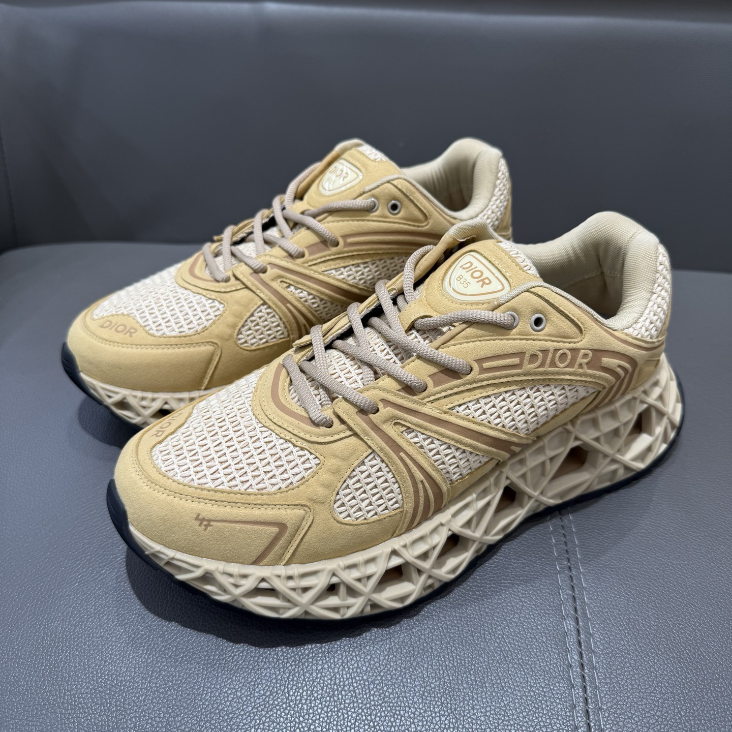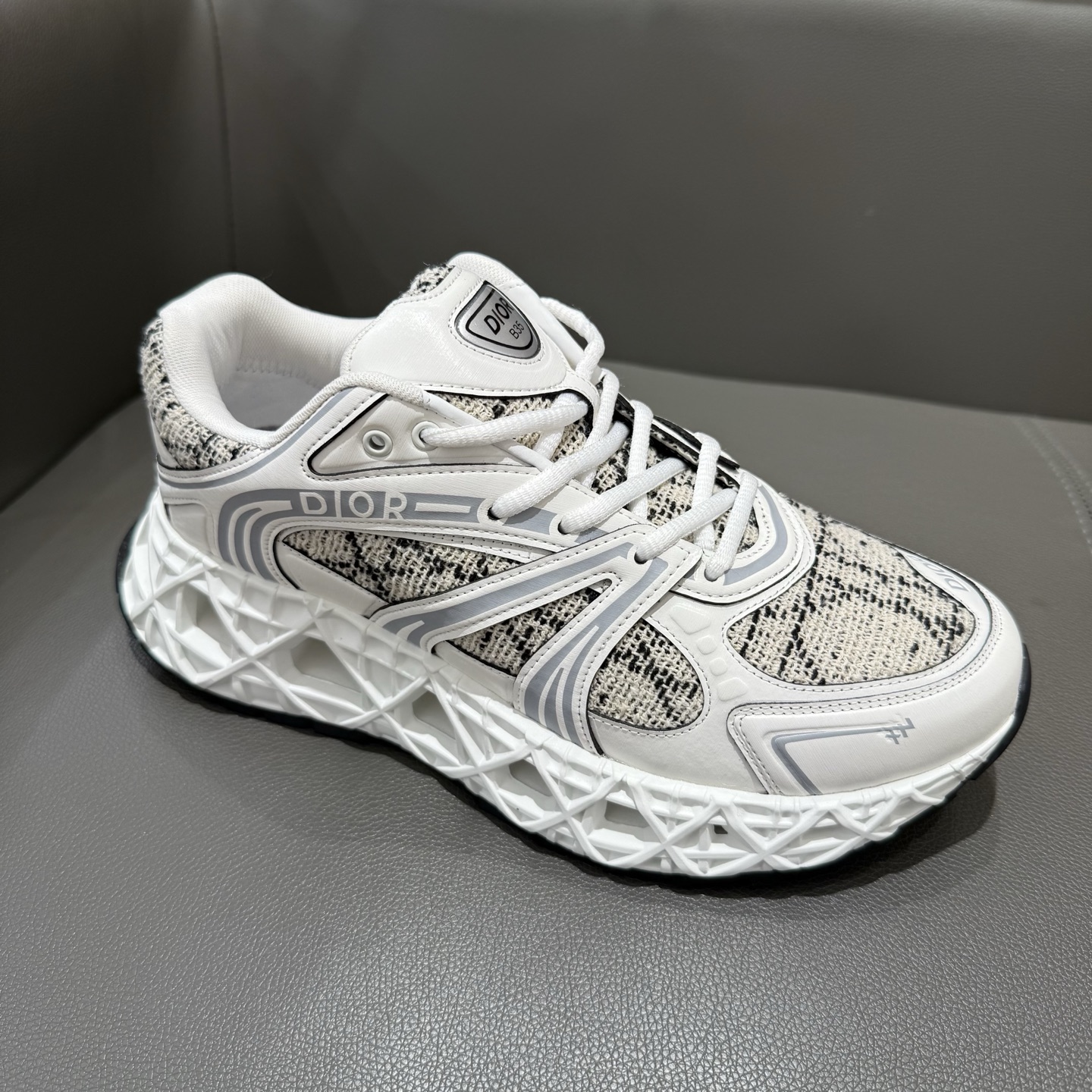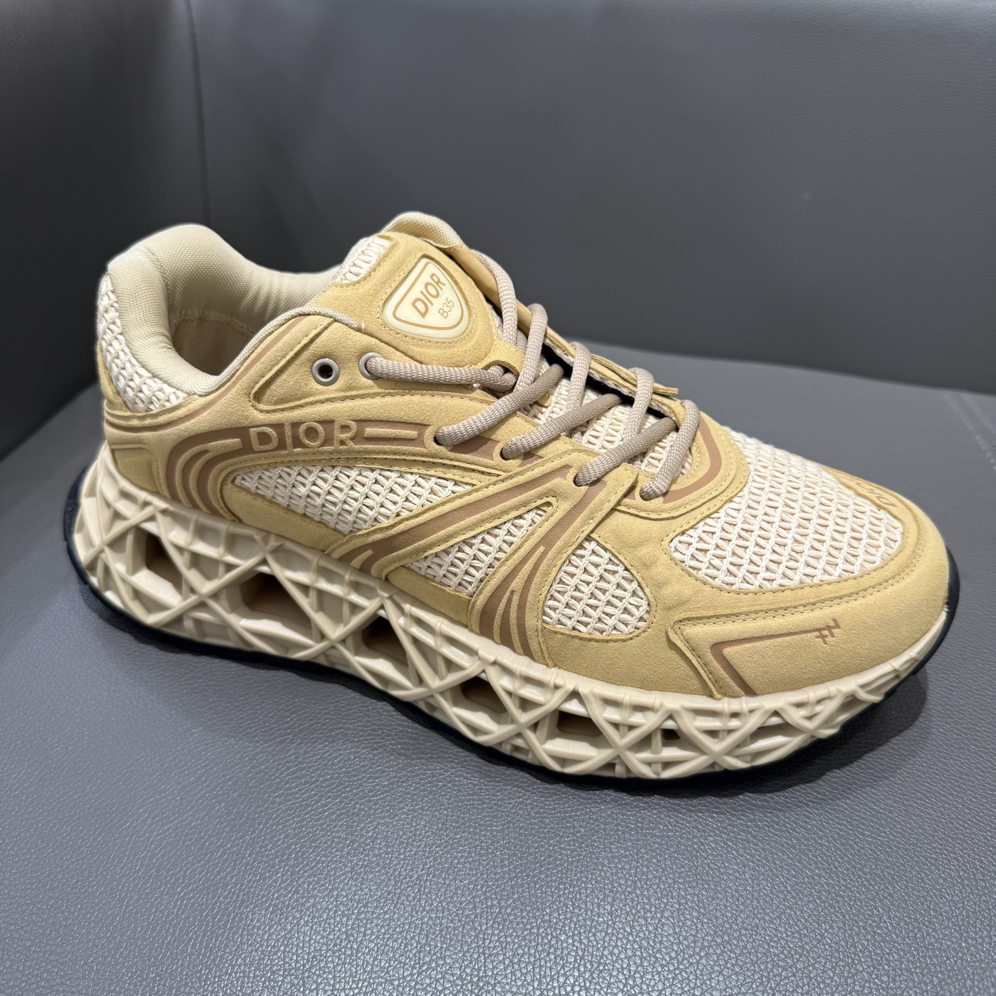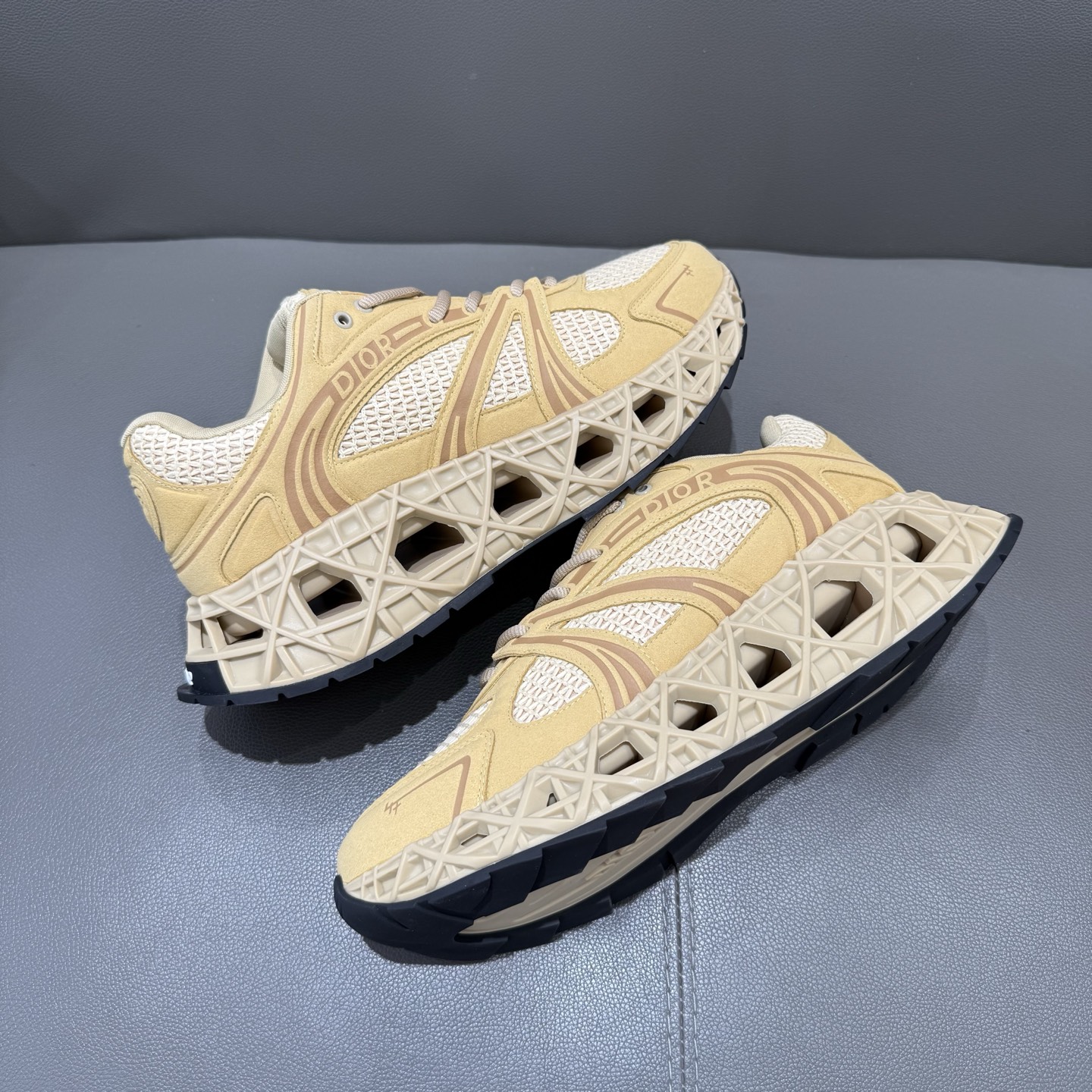 The B35 NXXT sneakers exude a bold sense of futurism. Inspired by architectural aesthetics, the hollowed sole features the iconic cannage motif—an ode to Dior’s innovative craftsmanship. Lightweight and voluminous, the outsole delivers excellent stability while adding a dynamic edge to the sleek silhouette.