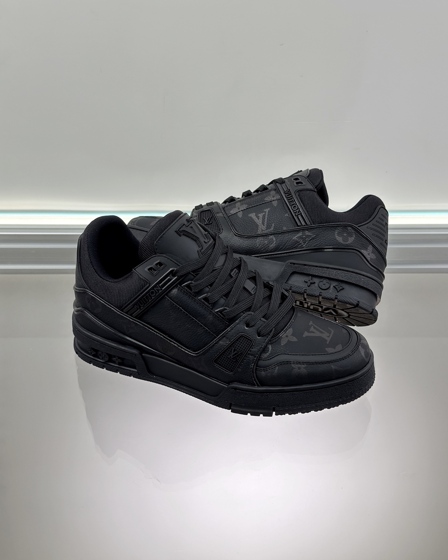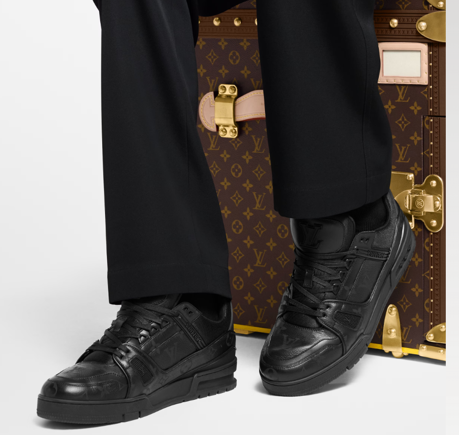 The LV Trainer sneaker is reinterpreted this season in a smart monochrome version in grained calf leather partially decorated with the Monogram pattern. Originally designed by Virgil Abloh, this iconic model was inspired by vintage basketball sneakers. It is notable for its rubber signatures and elaborately constructed upper, made of more than 80 pieces