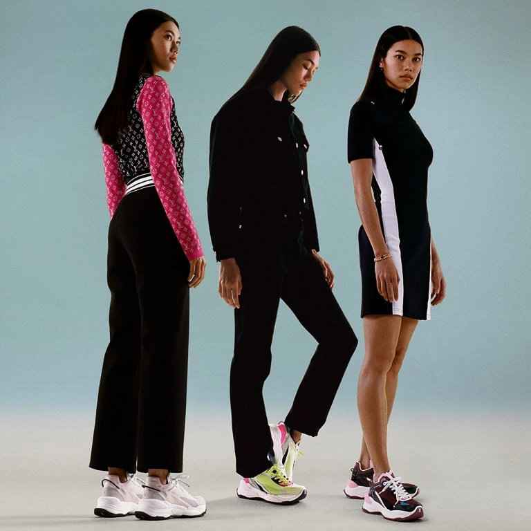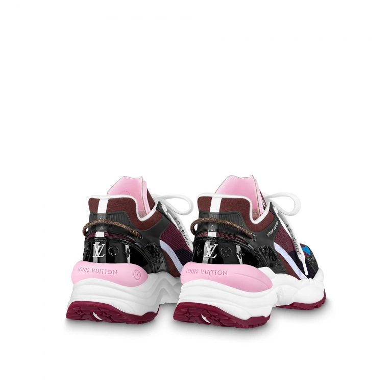 The Run 55 sneaker is a sporty model crafted from a combination of technical materials, including mesh, rubber and tape, as well as plain and suede calf leather. Geared to comfort, this running shoe features a lining with cushioned inserts and a lifted outsole for optimum bounce. The design incorporates multiple signatures, including a Monogram-canvas lace at the back.