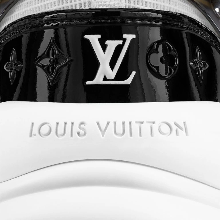 - Louis Vuitton signature and Monogram Flowers on the laces