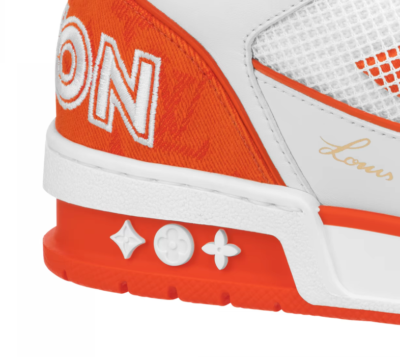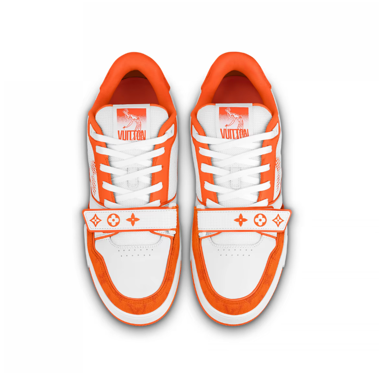 • Louis Vuitton LV Trainer Sneaker Velcro strap Monogram denim Orange 1A9ZBG
