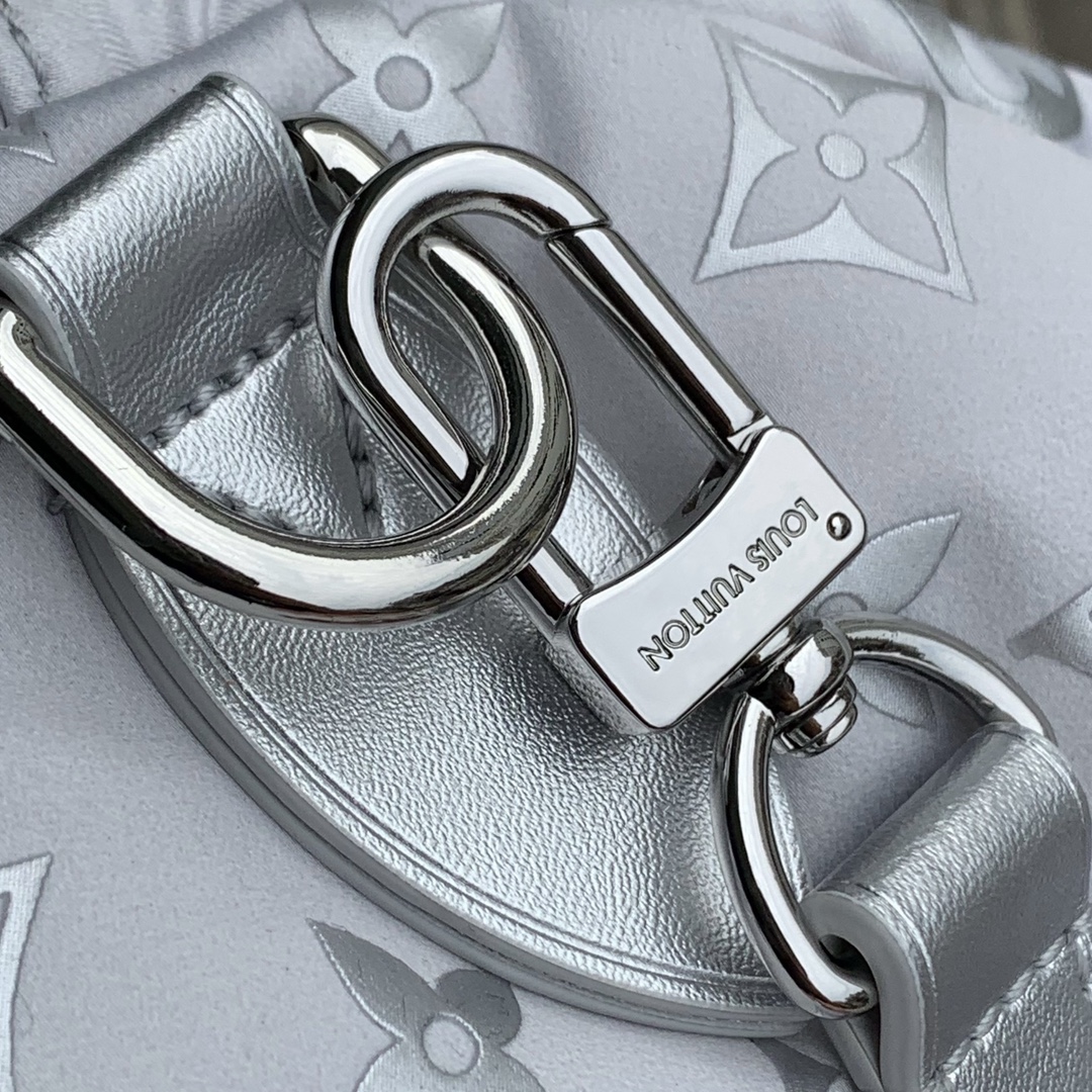 This Speedy Bandoulière 25 is part of the LV Snow collection, which introduces the House’s all-new Monogram Nylon in a gradient silver finish. The compact style is elevated with silver-toned hardware and includes a signature flower charm. It is sized to store essential items such as a phone, wallet and keys, and offers multiple carry options thanks to the additional removable and adjustable strap.
