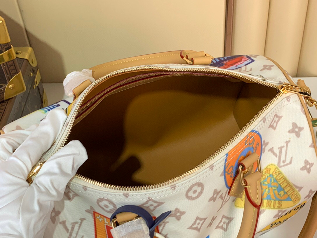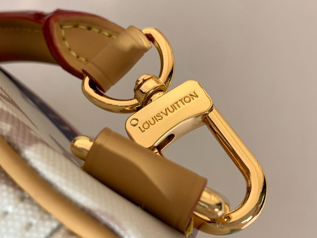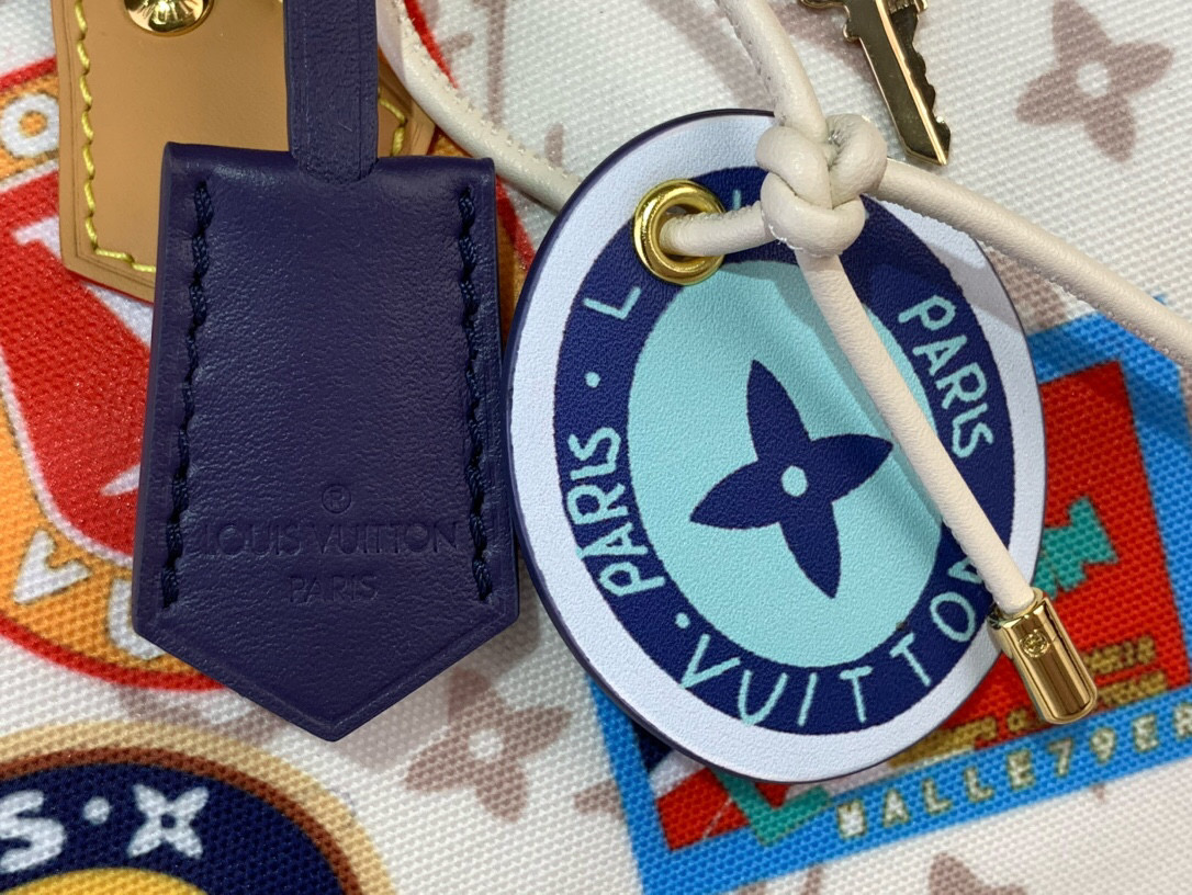 his edition of the Speedy Soft 30 showcases an updated version of the House’s Monogram Dune signature in a vintage-inspired finish. The perfect travel companion, it is decorated with an airplane charm and playful labels in a patchwork effect, which are taken from Gaston Louis Vuitton’s original collection. Attach the longer handle to wear it over one shoulder.