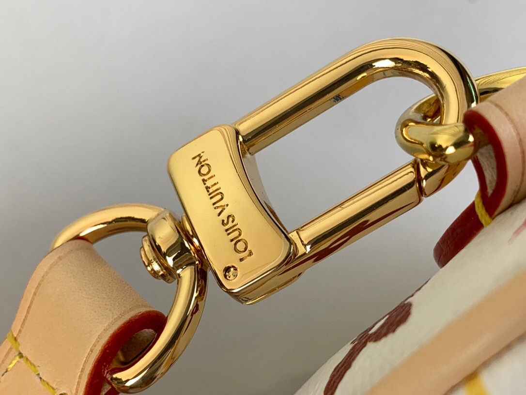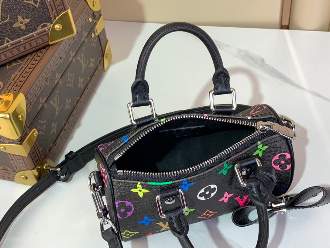 The scaled-down Nano Speedy makes a playful statement in Monogram coated canvas, which has been reworked in upbeat tones as part of the re-edition of the Louis Vuitton x Murakami collection. Natural cowhide leather trims add a timeless touch, as do two Toron top handles and a gleaming golden padlock in homage to the House’s travel heritage. Complete with a removable, adjustable strap and an exclusive LV x TM keybell.