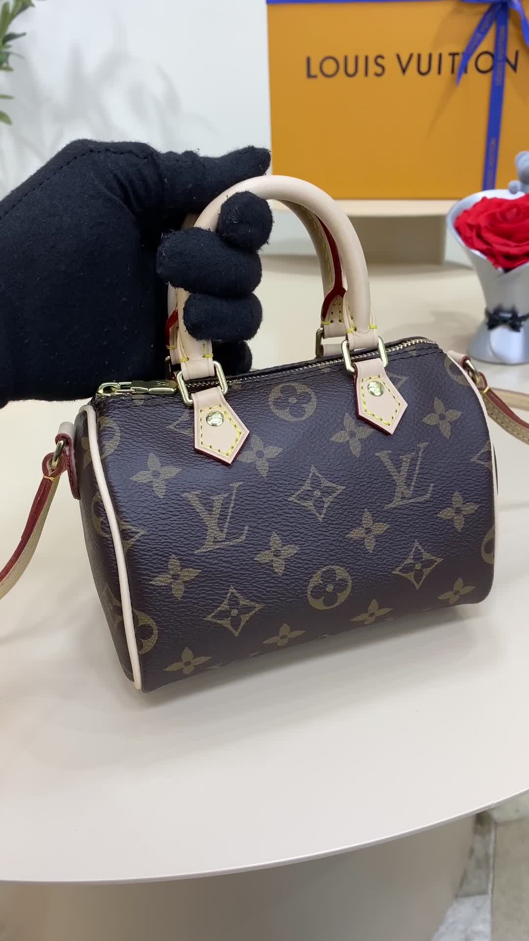 The Nano Speedy is a perfect miniature version of Louis Vuitton’s iconic Speedy bag. Crafted from Monogram canvas with natural leather trim, it features two handles and a long strap for shoulder or cross-body carry. Extremely lightweight and large enough for a smartphone, cards and keys, it is a stylish way to carry essentials.