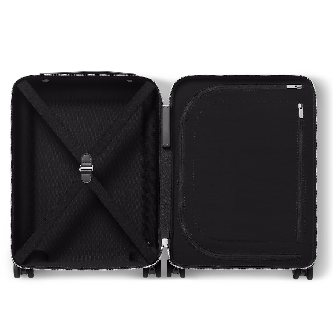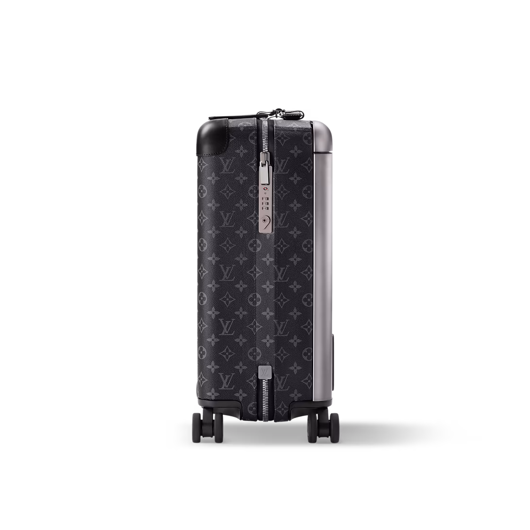The Horizon 50 trolley case exudes understated elegance in Monogram Eclipse canvas with black-leather corners. Equipped with four double-wheels and a wide external cane, it’s remarkably comfortable to roll. Ultra-light, it’s the perfect size for carry-on luggage. The well-designed interior includes elastic straps and divider with pocket to keep things organized.