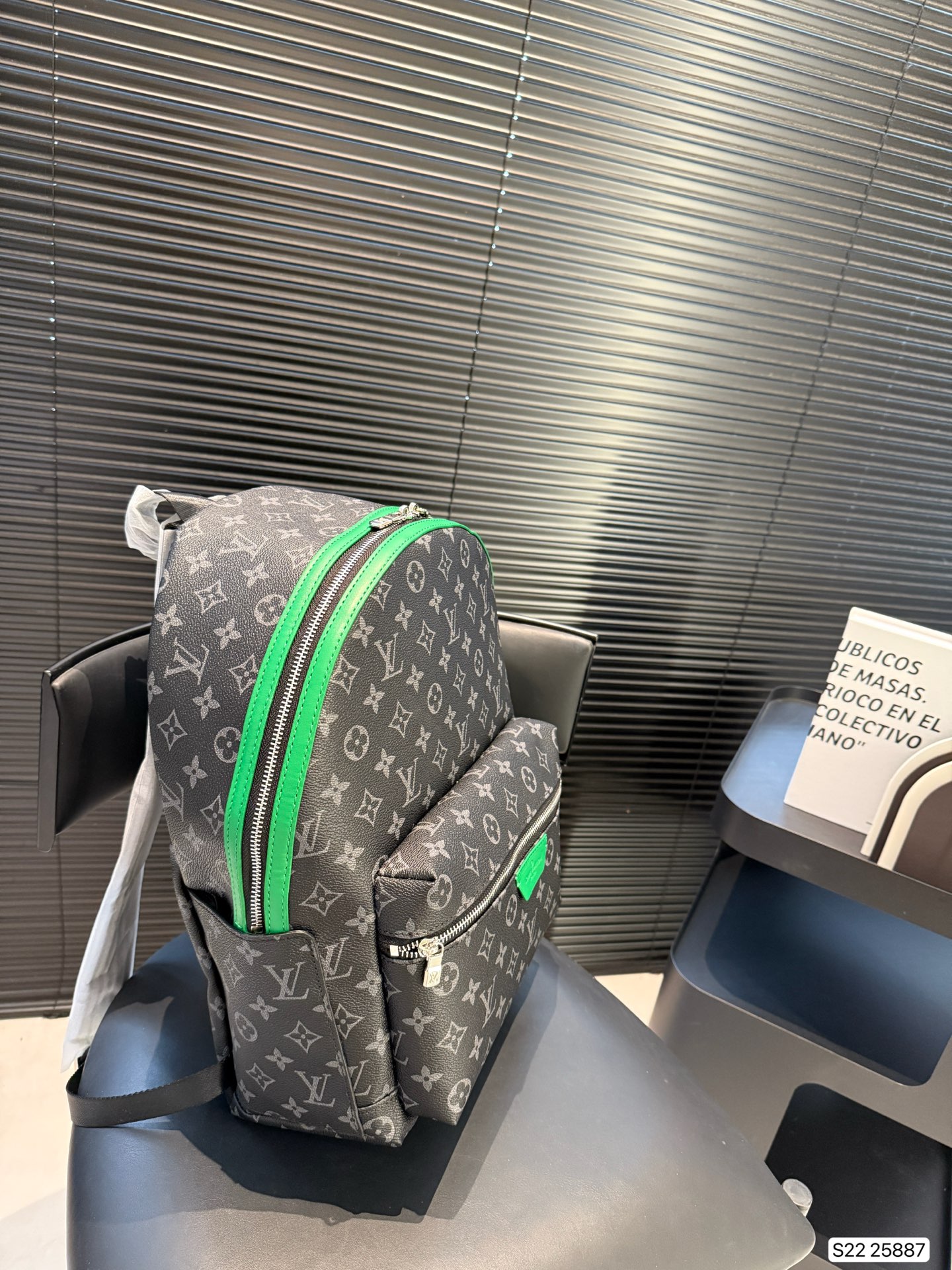The Discovery Backpack PM is made from Monogram Eclipse canvas with touches of bright cowhide leather, bringing an edge to the classic design. The front zipped pocket and two open side pockets offer quick access to essentials. Lined in colored-textile, the interior features two flat pockets and a padded pocket for a 14-inch laptop.