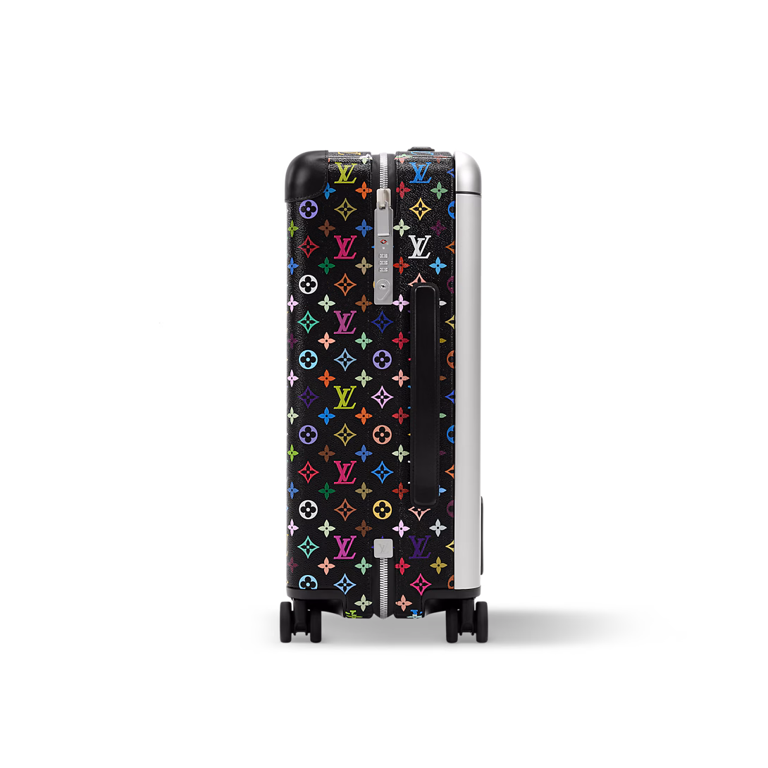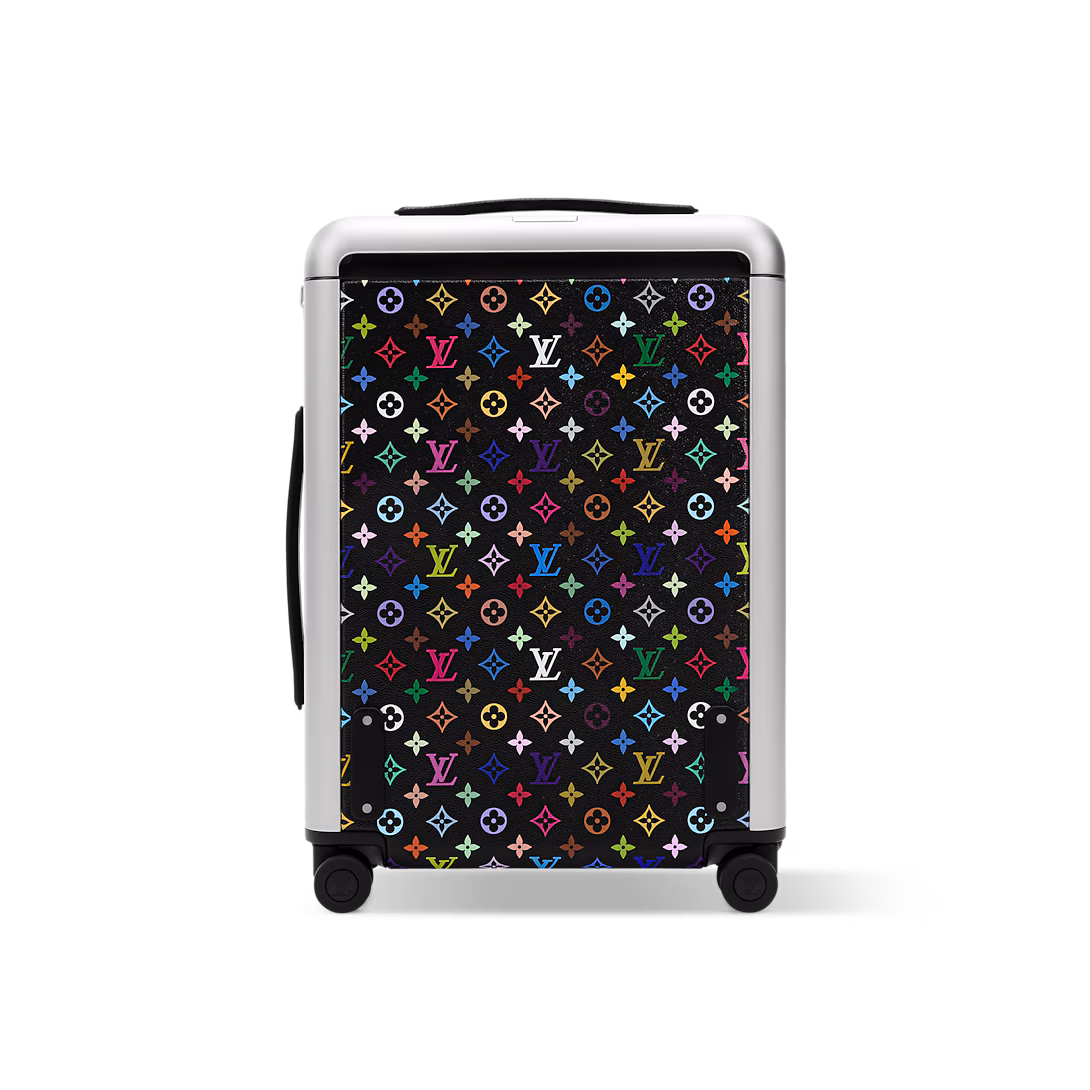 The House’s signature Horizon 55 suitcase is joyfully uplifted in vibrant multicolored Monogram coated canvas from the cross-category Louis Vuitton x Murakami collection. It is crafted in a convenient cabin size with compact wheels, an adjustable Trolley system and a secure zipper closure complete with a TSA combination lock. Hot-pink elastic straps add a final playful pop of color from the collection.