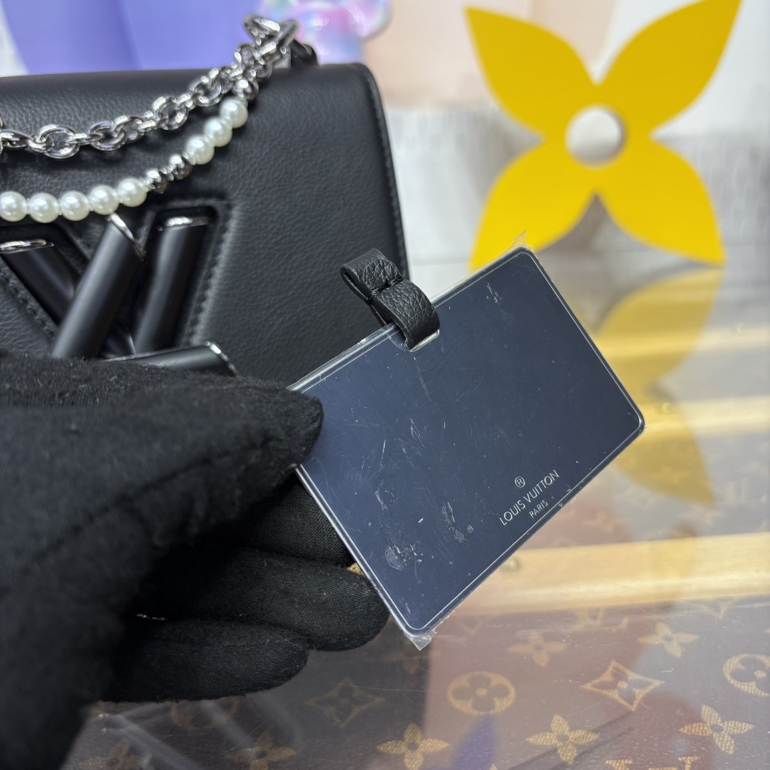 Inspired by the Monogram Flower, this Twist PM Slim from the Harmony collection is defined by its decorative chain. It is crafted from Taurillon leather embellished with a signature LV Twist lock that is coated in resin to create a tonal finish. The day-to-night style is fitted with multiple pockets and comes with a removable mirror.