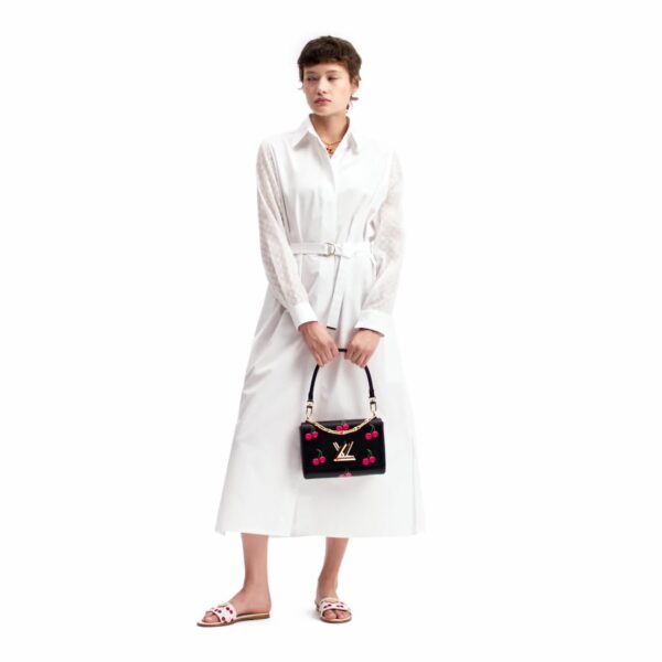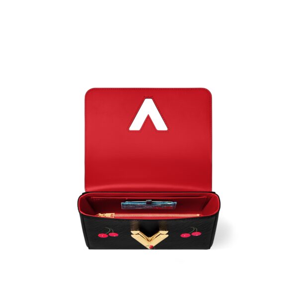 The Twist MM handbag is elegantly reimagined in the House’s signature textured Epi grained cowhide leather detailed with playful cherry motifs in the exuberant style of world-renowned Japanese artist Takashi Murakami. Gold-toned hardware adds a chic polished touch, including a decorative chain embellishment and the iconic LV Twist lock. The inside is organized with two pockets and accommodates daily essentials including a smartphone and long wallet.