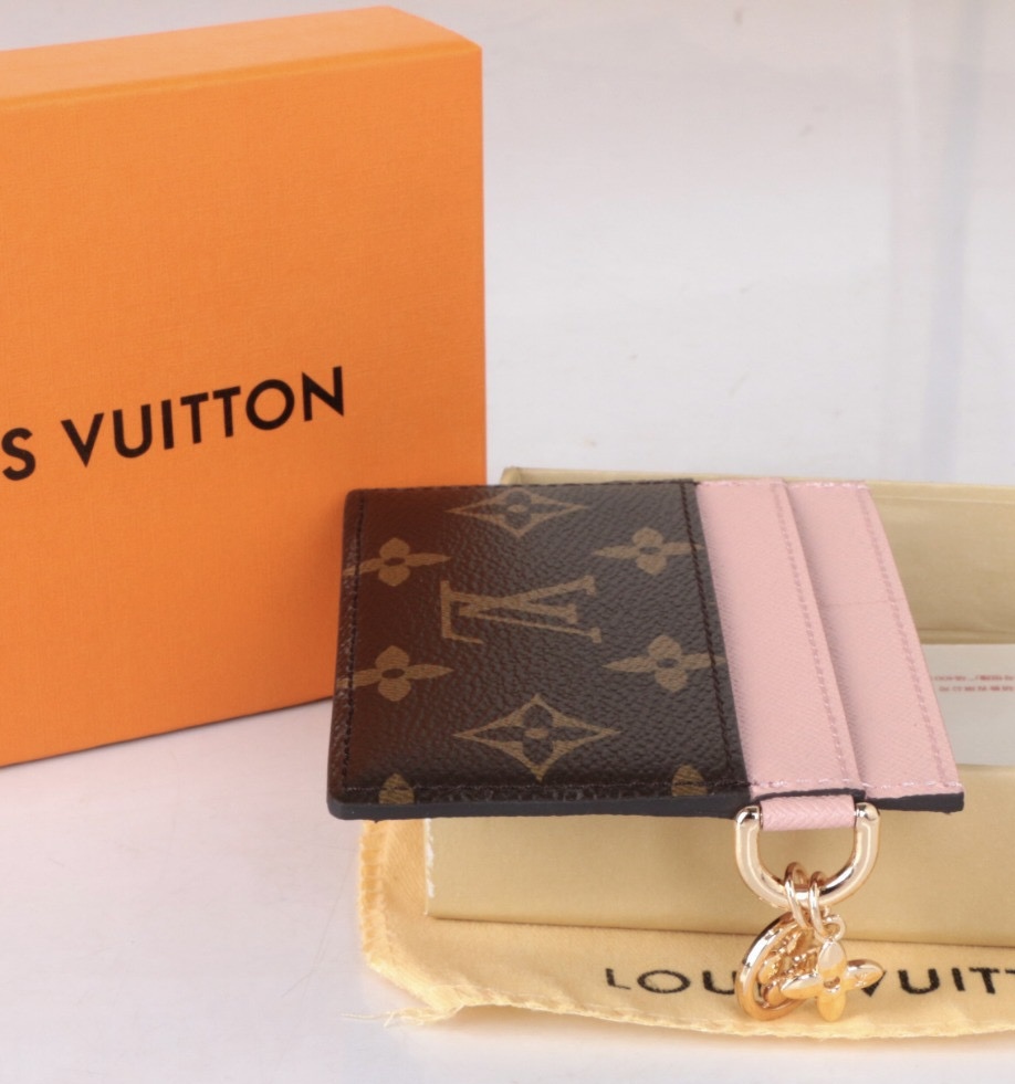 The LV Charms Card Holder in Monogram coated canvas and cowhide leather makes a great gift. Decorated with two gold-color Monogram Blossom charms, its clever design includes five card slots: two slots on each side as well as a larger compartment in the middle.
