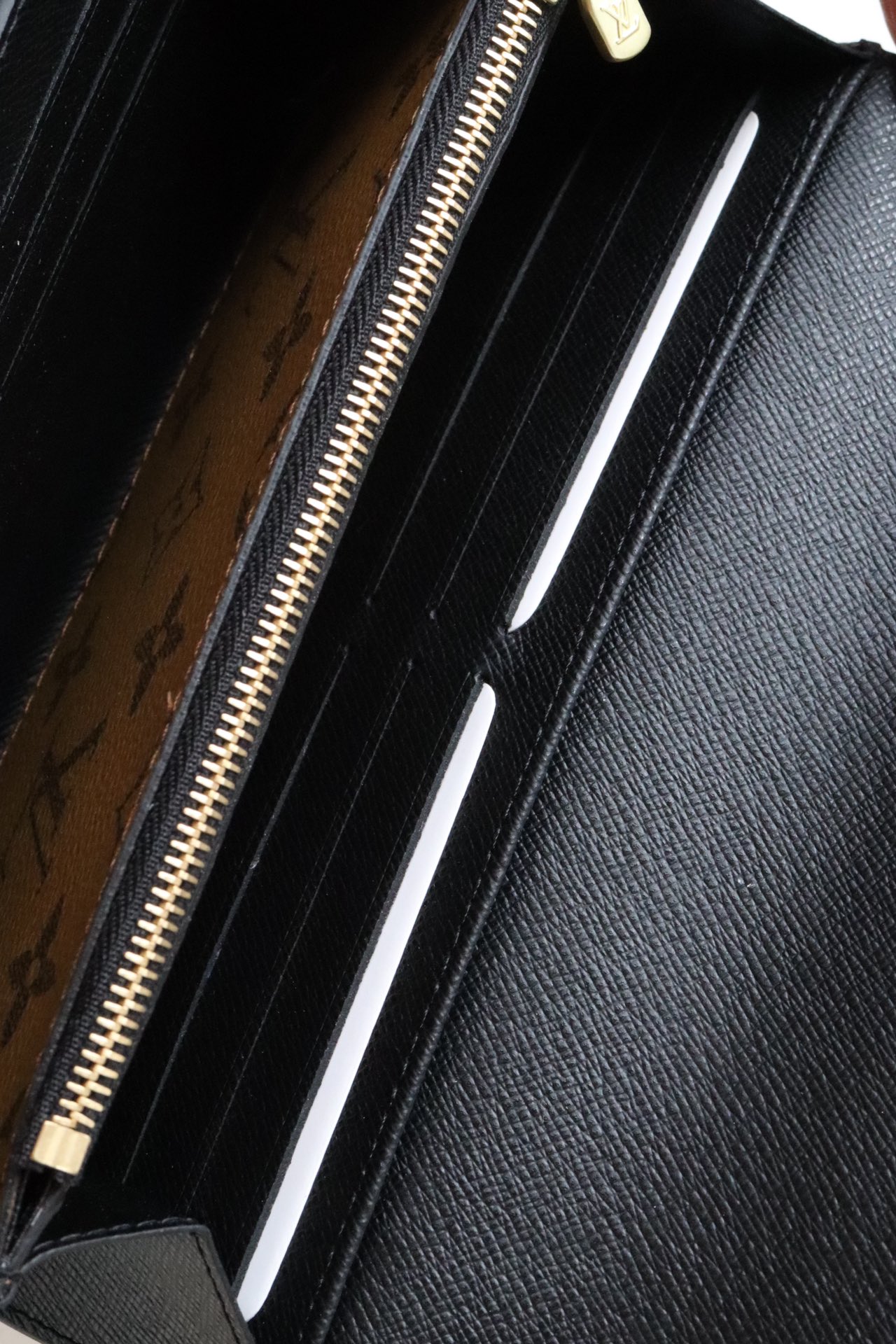 The Sarah wallet is revisited in an elegant combination of Monogram and Monogram Reverse Giant canvas. This classic, rectangular wallet is notable for its well-organized interior featuring an array of pockets and card slots. Its envelope-style flap is secured with an engraved, gold-tone press-stud.