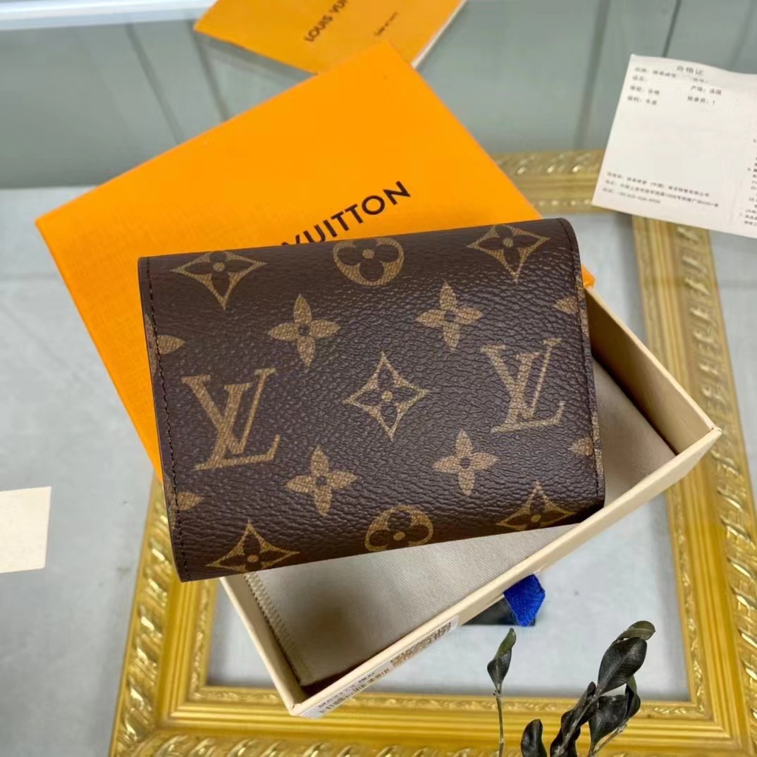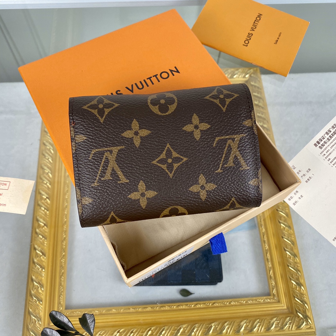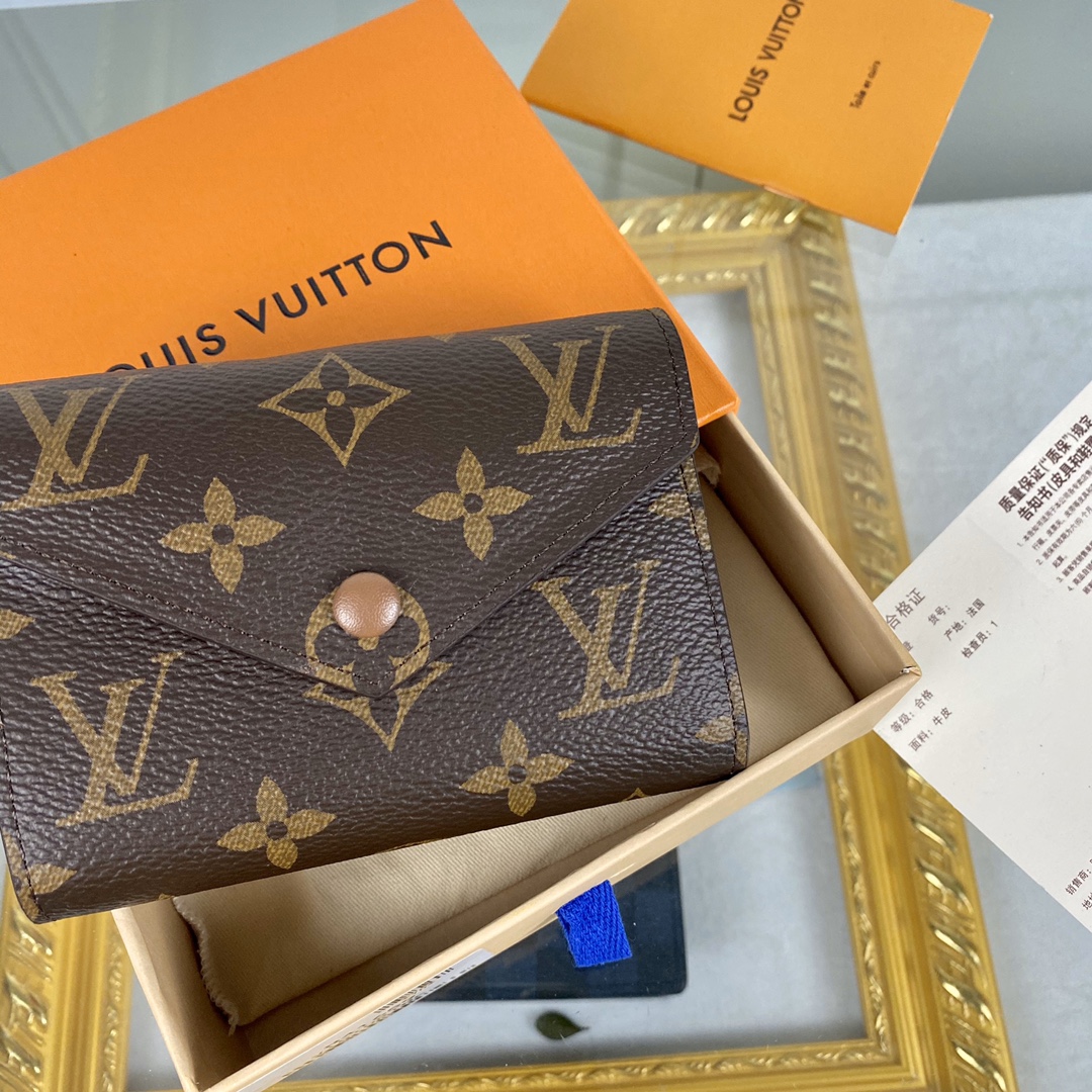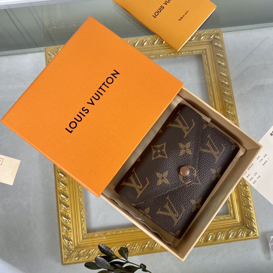 This small and exquisite Victorine wallet is made of Monogram canvas, combining femininity with practicality. Opening the wallet reveals multiple practical compartments, including a slot for business cards and pockets for banknotes and change.