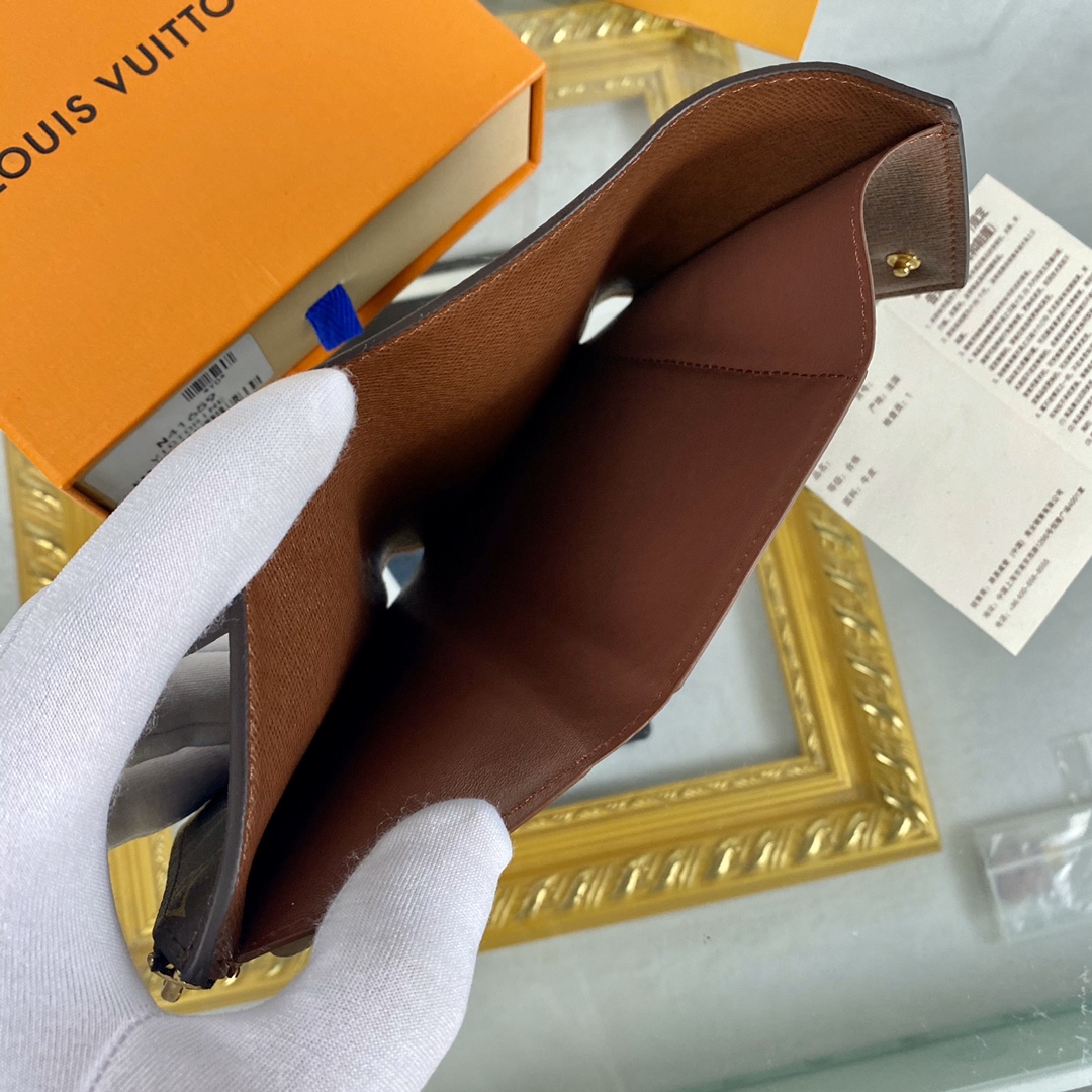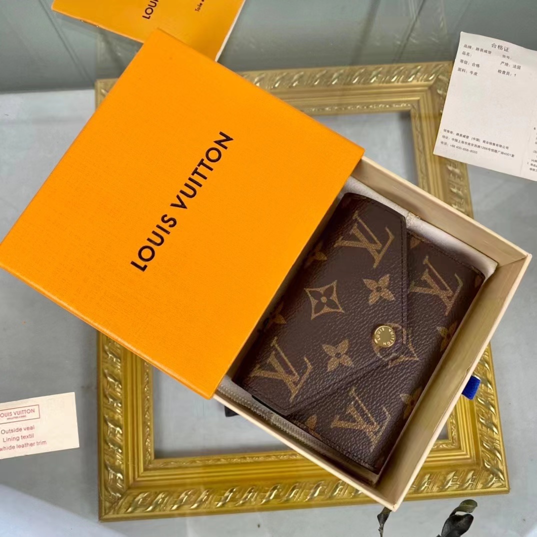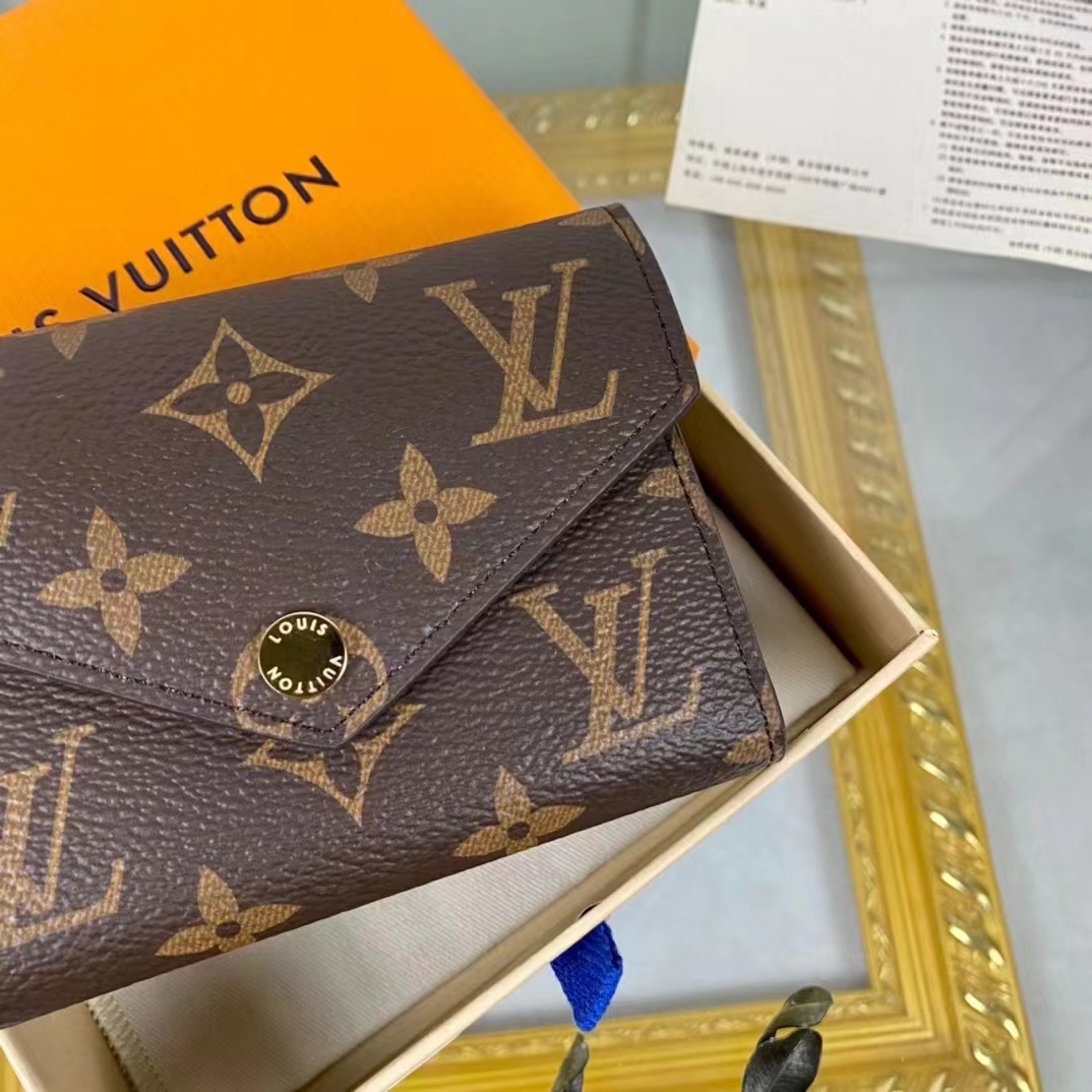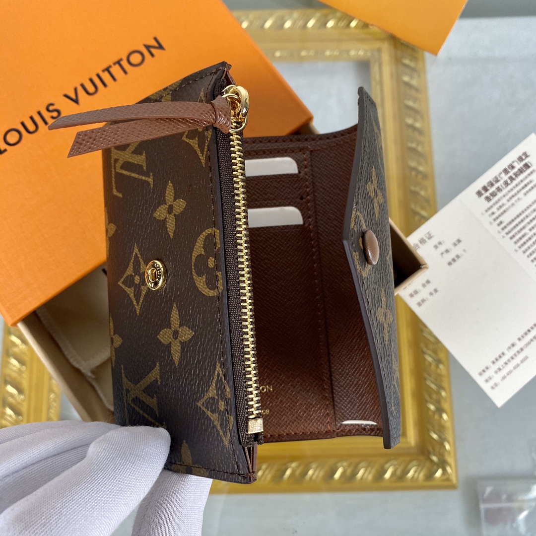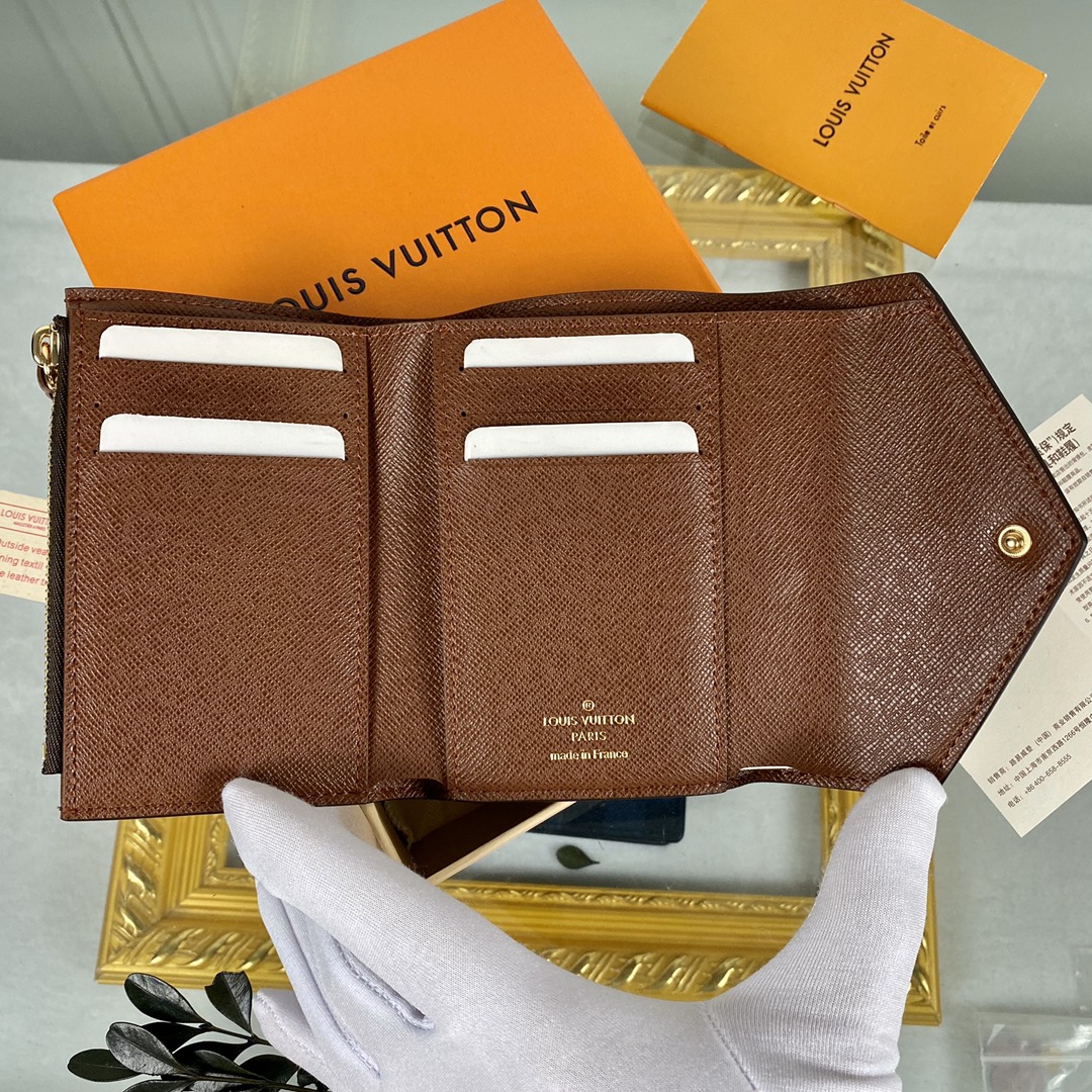 This small and exquisite Victorine wallet is made of Monogram canvas, combining femininity with practicality. Opening the wallet reveals multiple practical compartments, including a slot for business cards and pockets for banknotes and change.