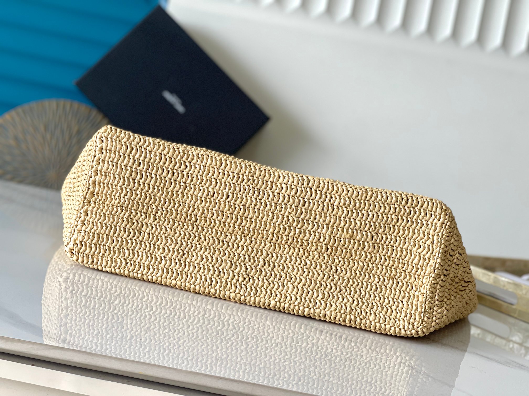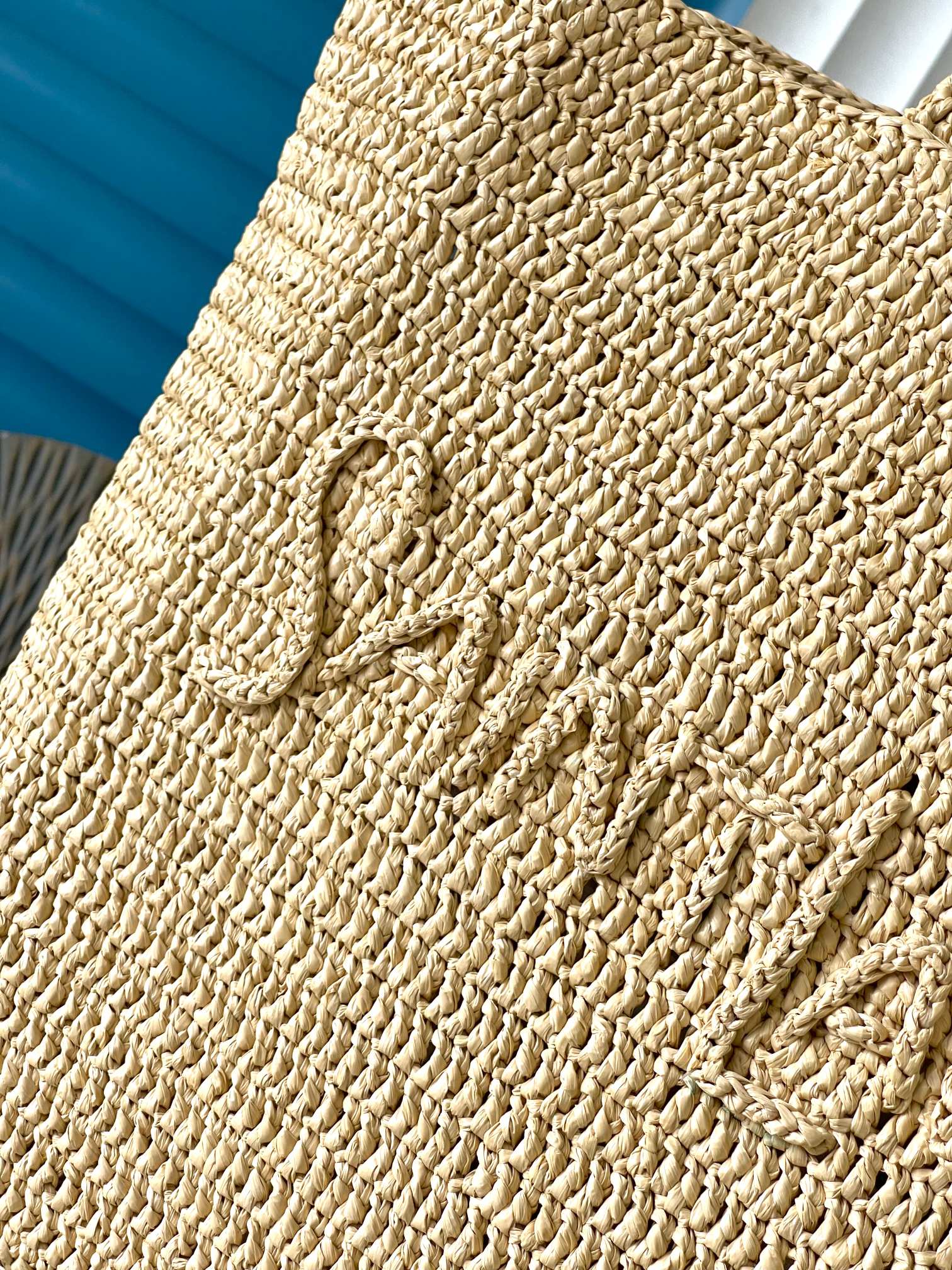 Material: Natural raffia (textured, eco-chic)