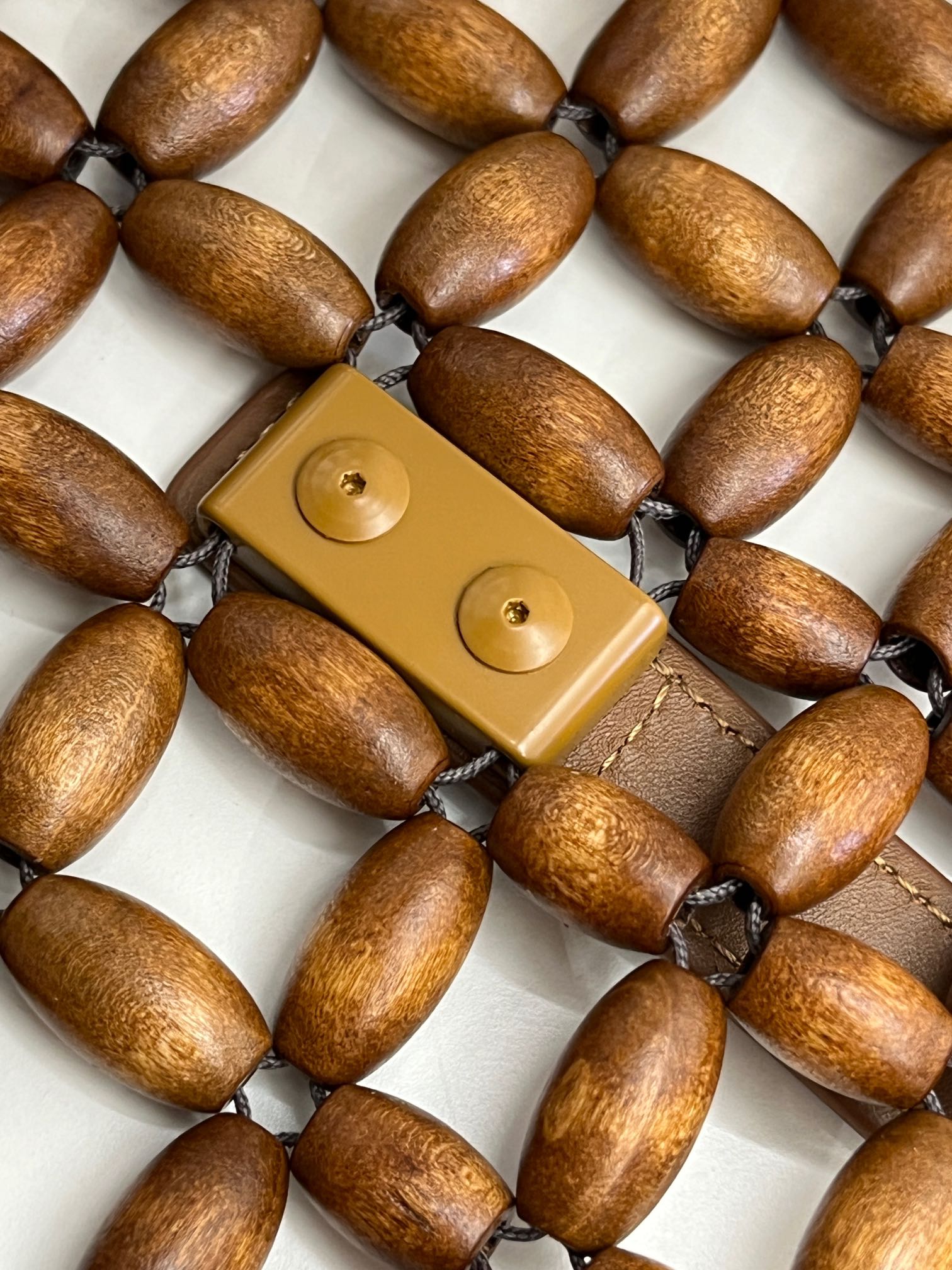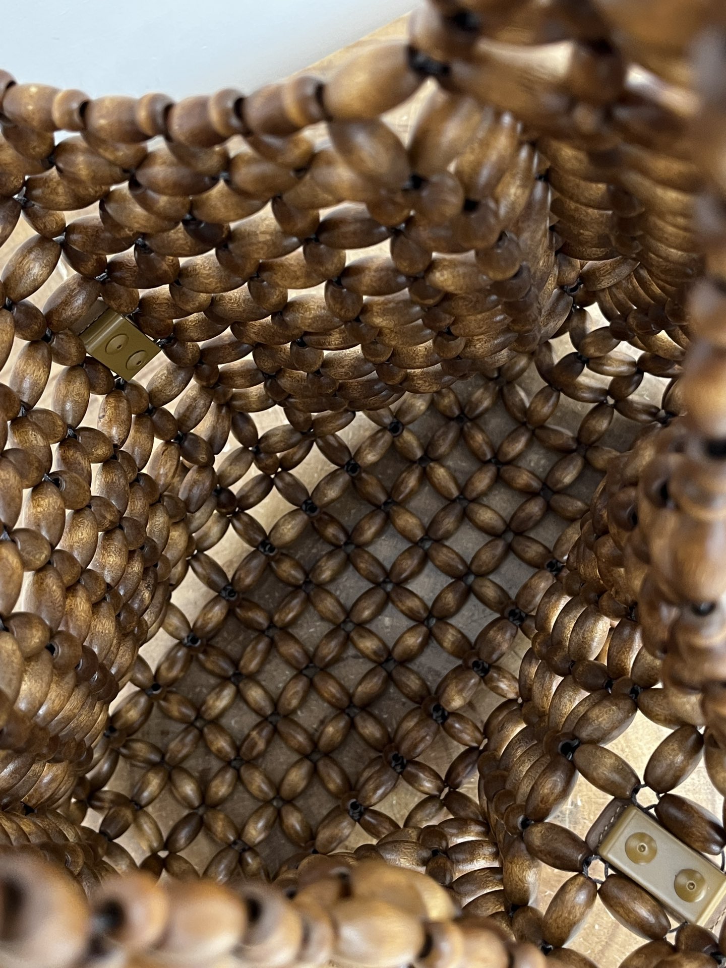Absolutely love this uniquely vintage and exquisite bag! Crafted with masterful bead weaving, the design features the iconic YSL logo elegantly strung atop the wooden beads.