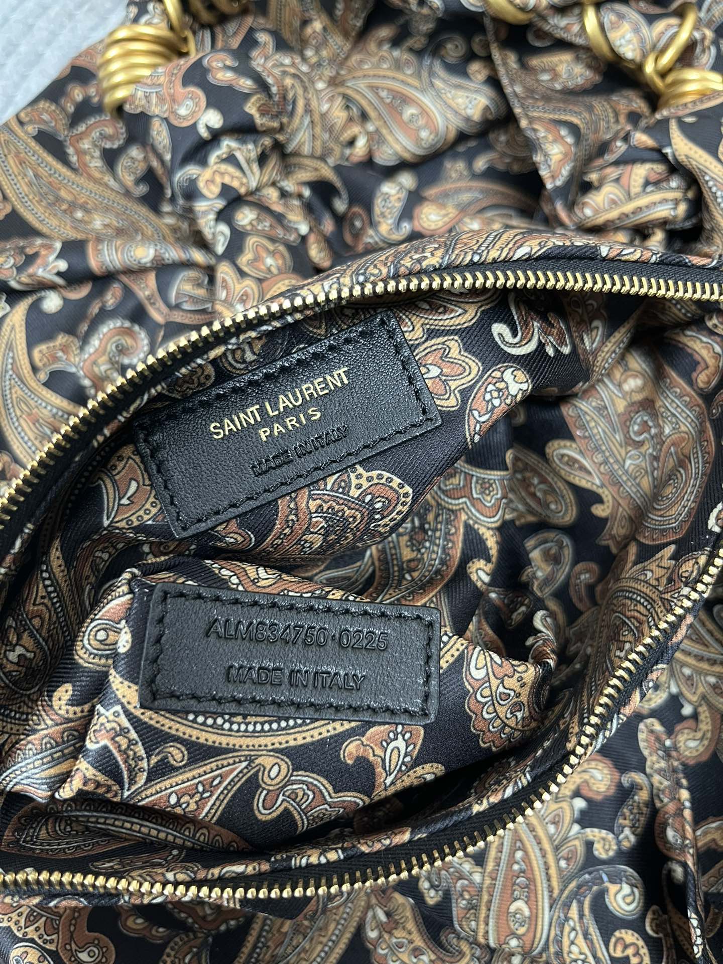 Spacious bag in certified silk twill featuring a woven CASSANDRE jewelry chain.