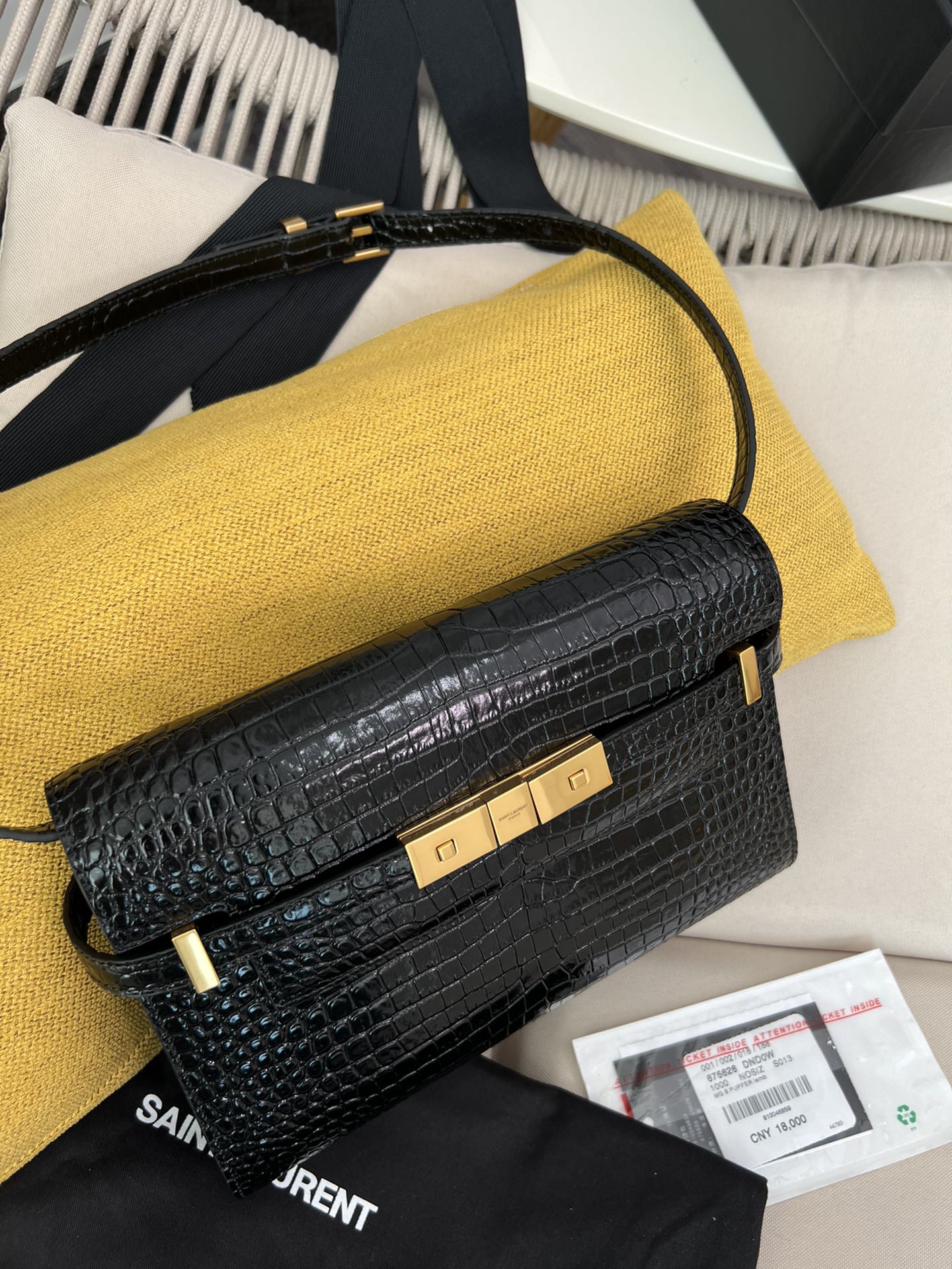 • YSL-Manhattan small crocodile-effect leather shoulder bag