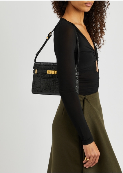 YSL-Manhattan small crocodile-effect leather shoulder bag