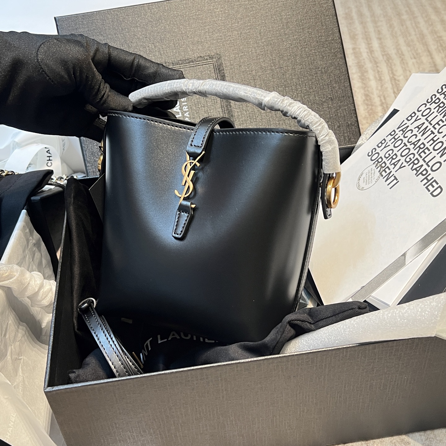 YSL Mini Leather Bucket Bag