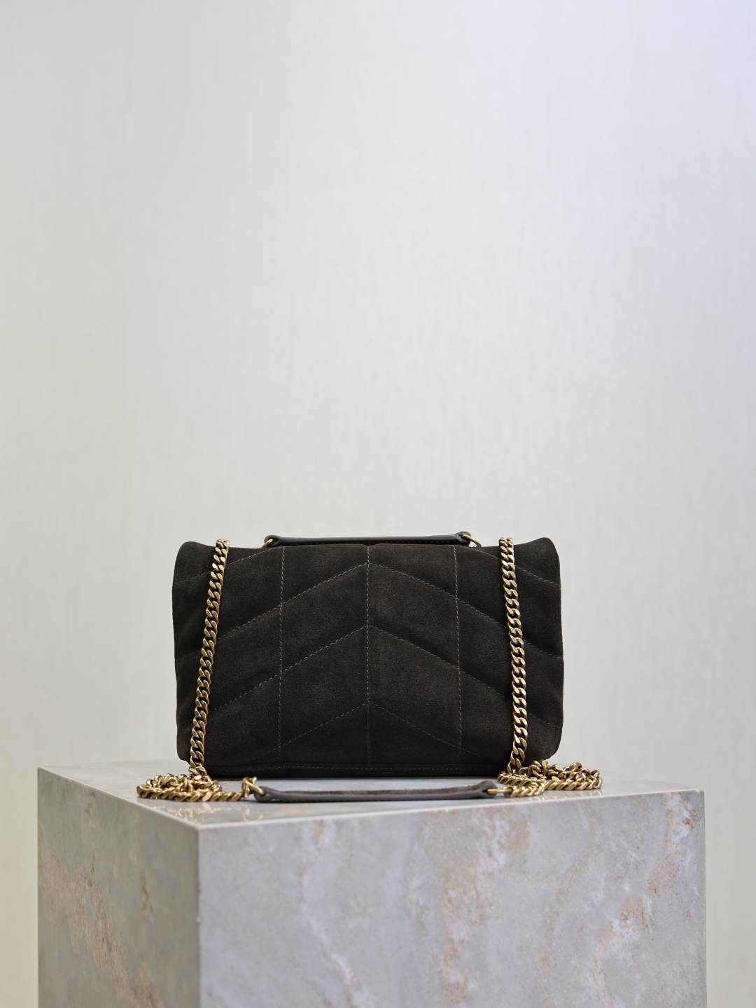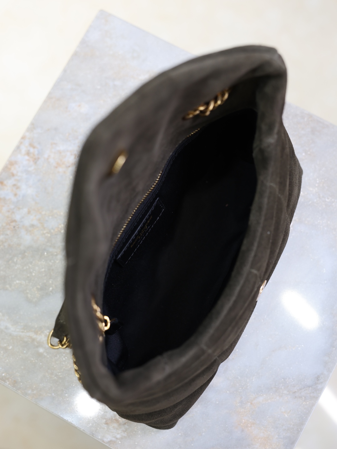 The mini version of the iconic LOULOU puffer, in soft suede with chevron-quilted topstitching.