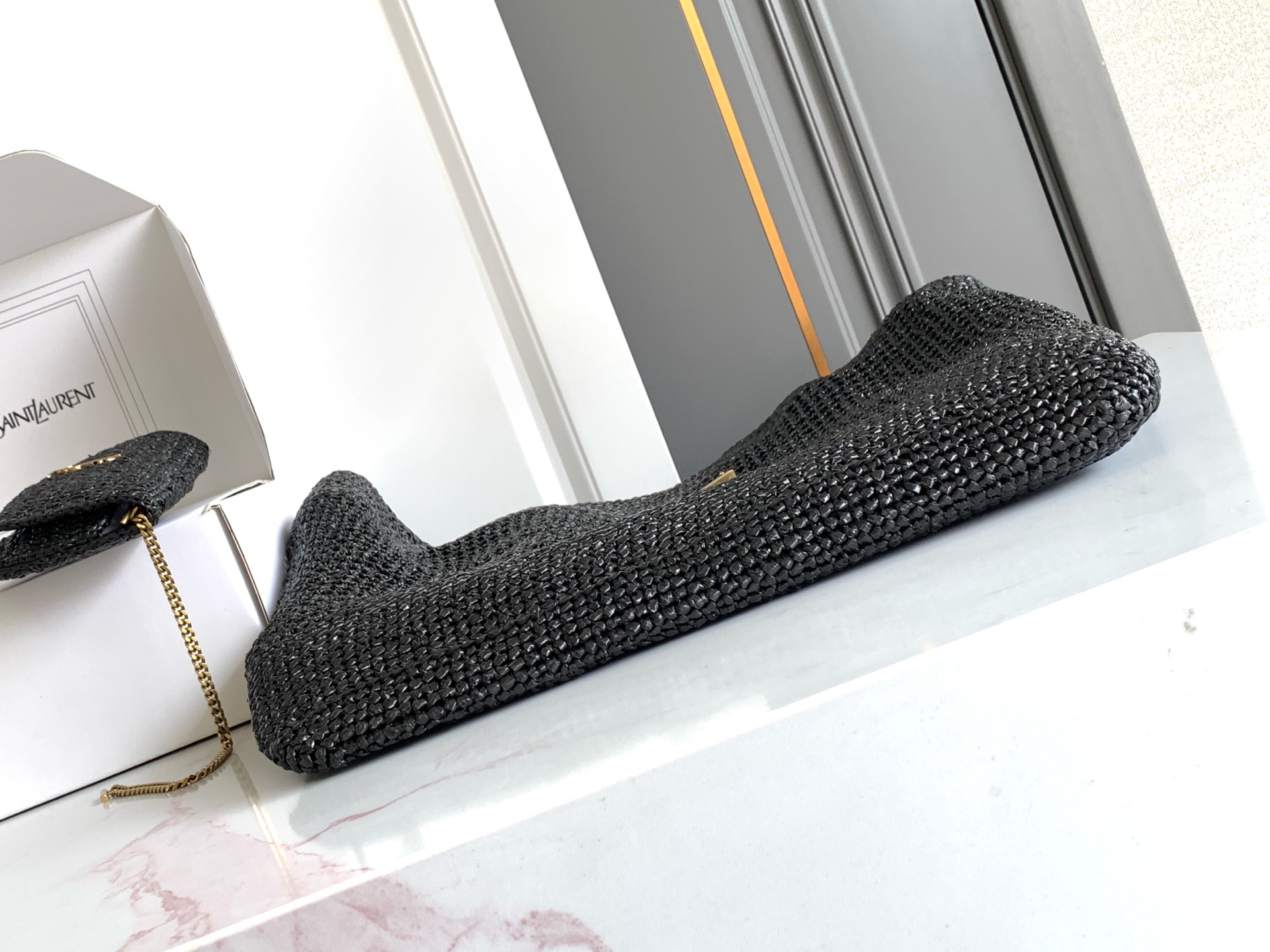 Includes a removable raffia sunglasses case affixed with a long chain.