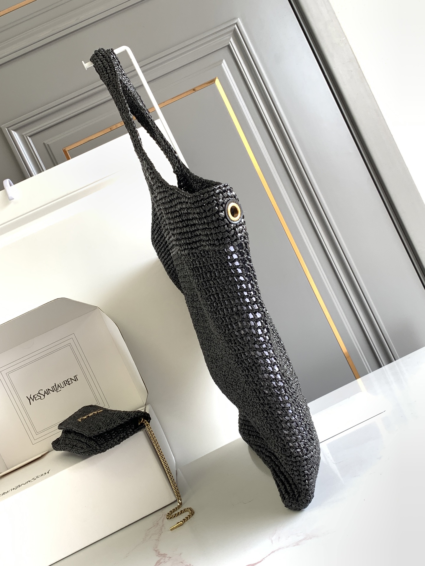 Maxi tote in natural raffia and vegetable-tanned leather, crocheted entirely by hand.