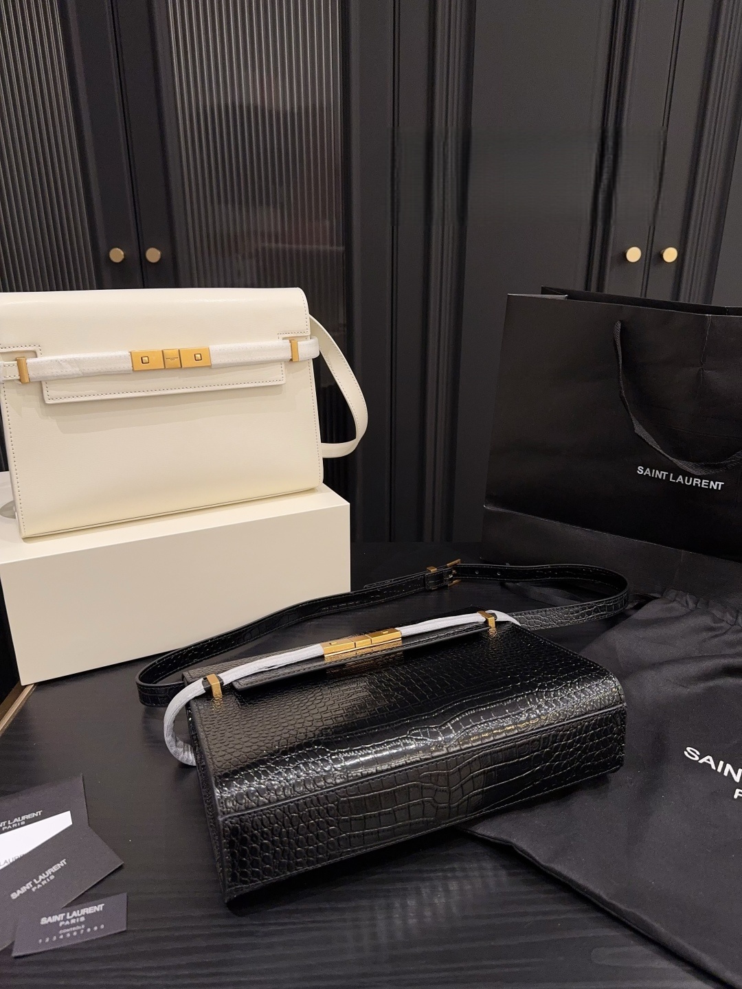 YSL Saint Laurent Manhattan Crocodile-Embossed Baguette Bag